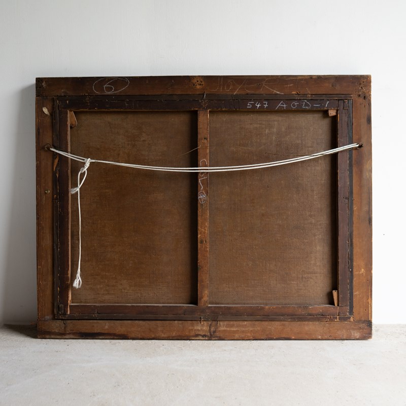Overall, the painting is in good original vintage condition. There is some wear commensurate with age, including some minor losses and craquelure throughout. The painting could possibly be cleaned is so desired which would probably bring out some vibrancy and more luminosity, which the artist is known for, but as a decorative piece, we like it as it is, a somewhat duller, aged painting with a dusty quality to it. The frame is also largely in good vintage order. There are some minor losses to the gilt gesso, and again, the gilding has an aged, duller finish to it rather than being bright or shiny gold.
