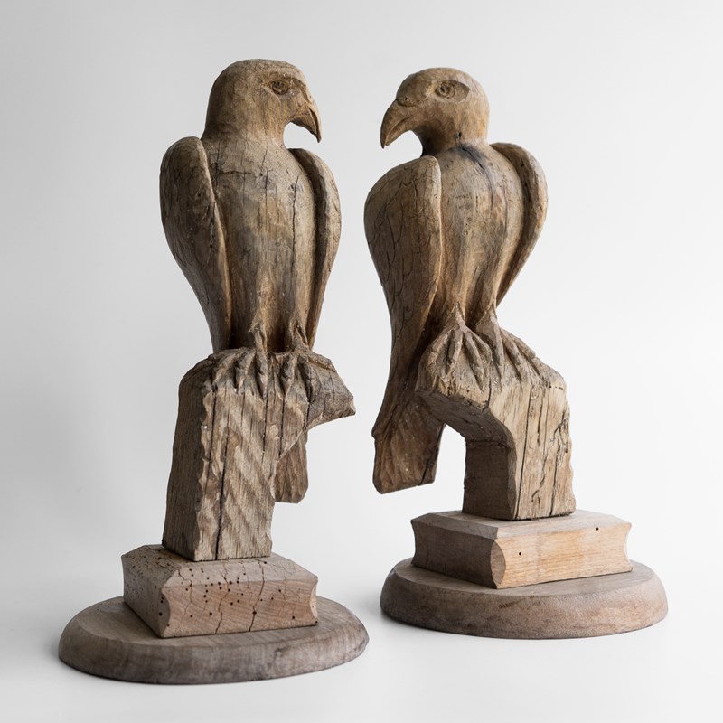 PAIR OF BIRD OF PREY CARVINGS
