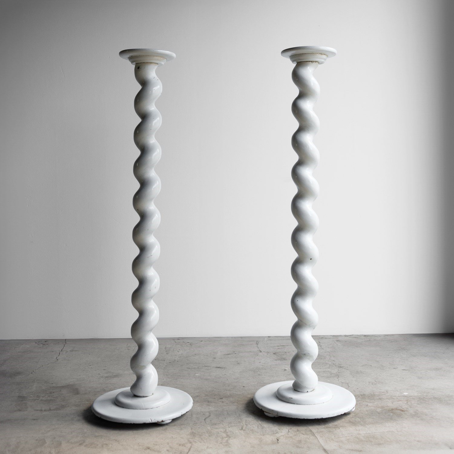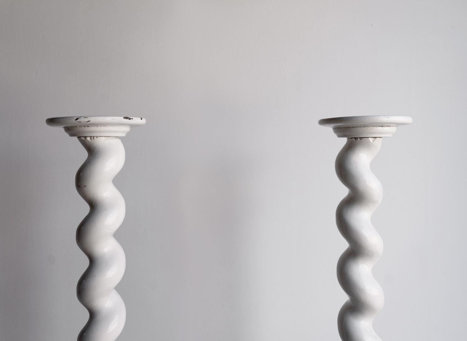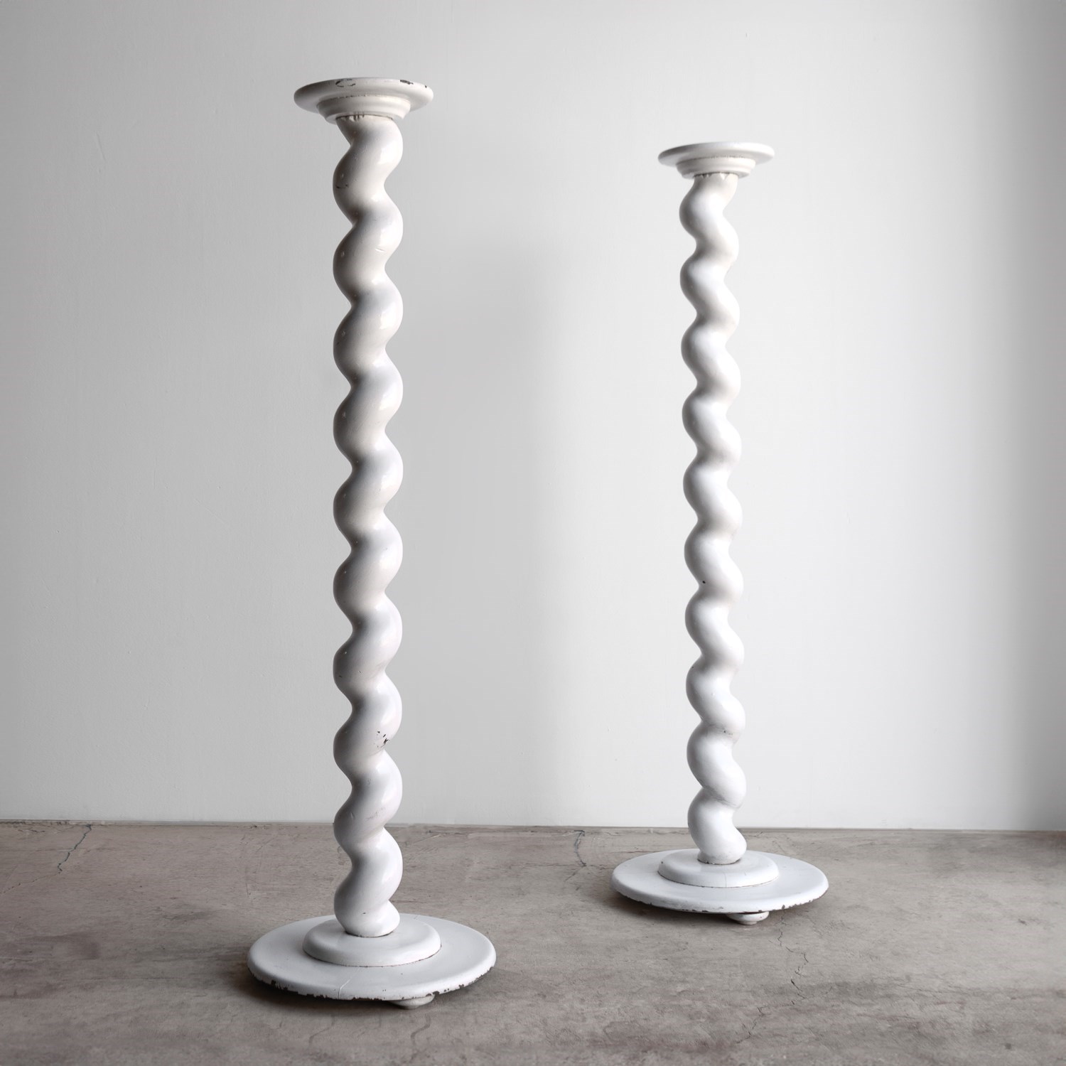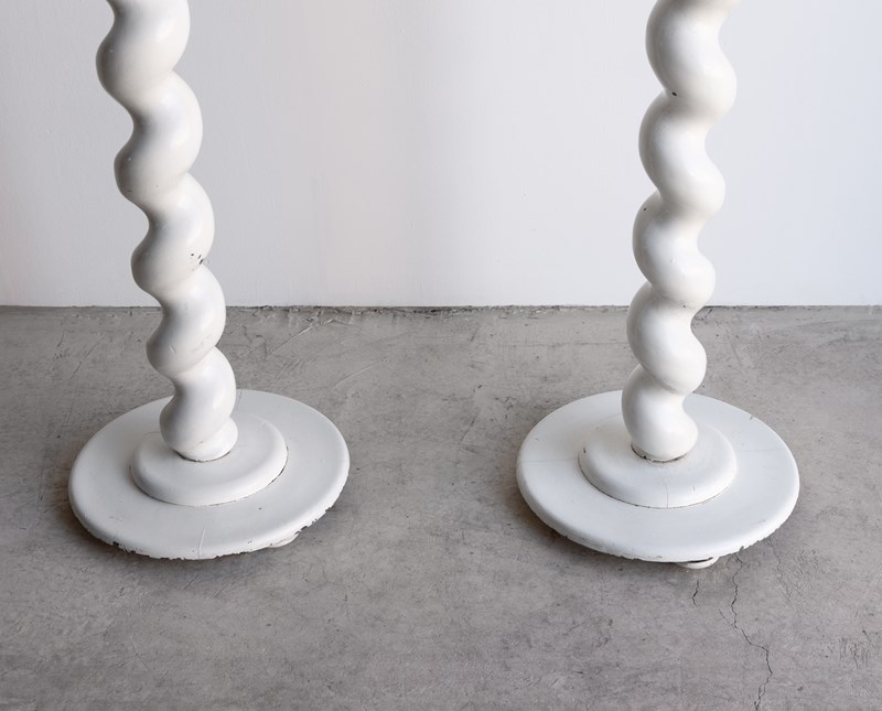 Pair Of Antique White Painted Barley Twist Torchere Stands, Early 20Th Century