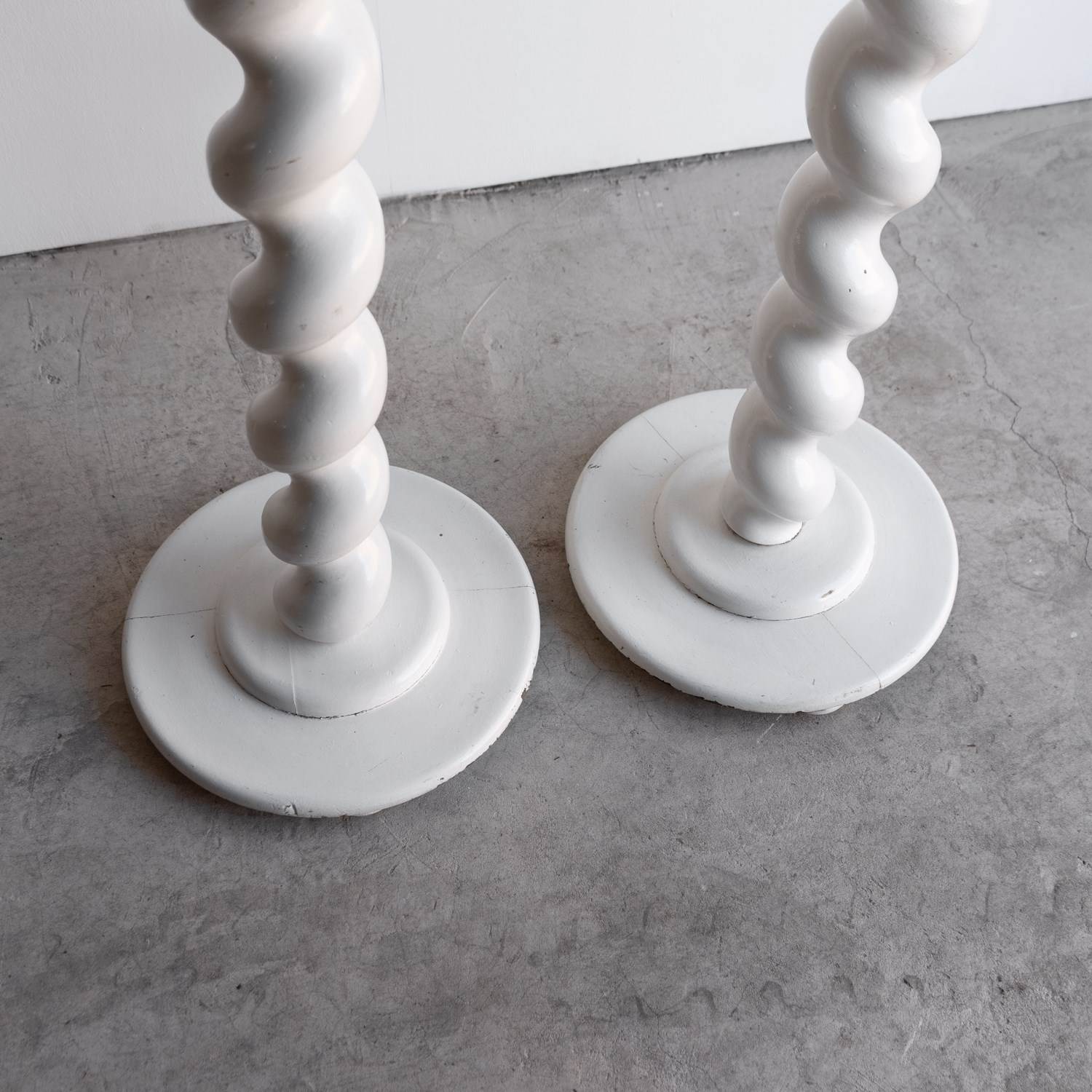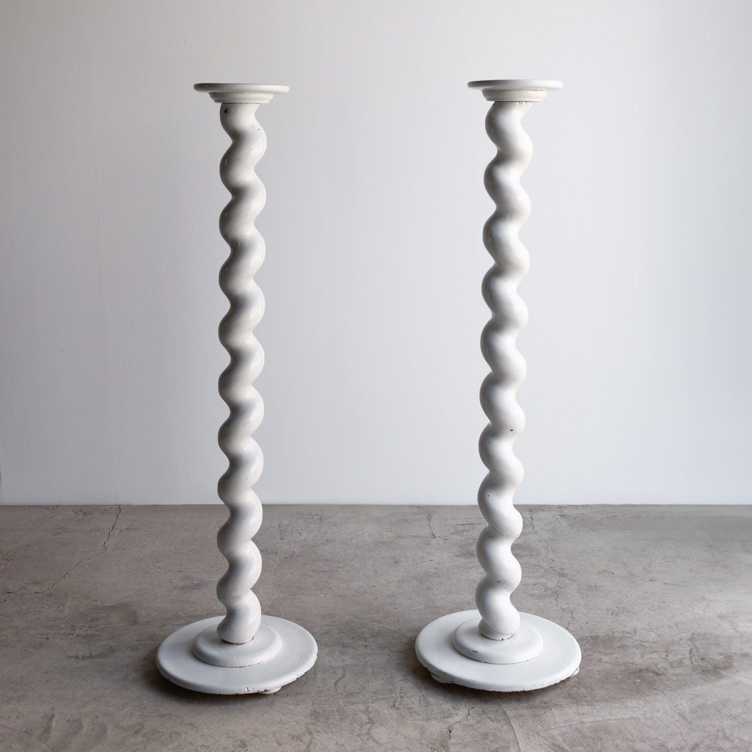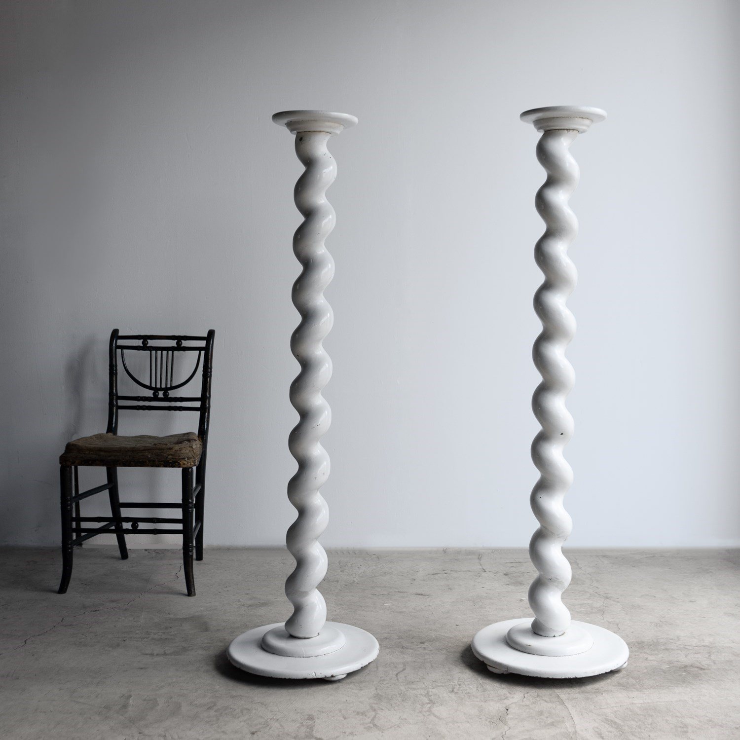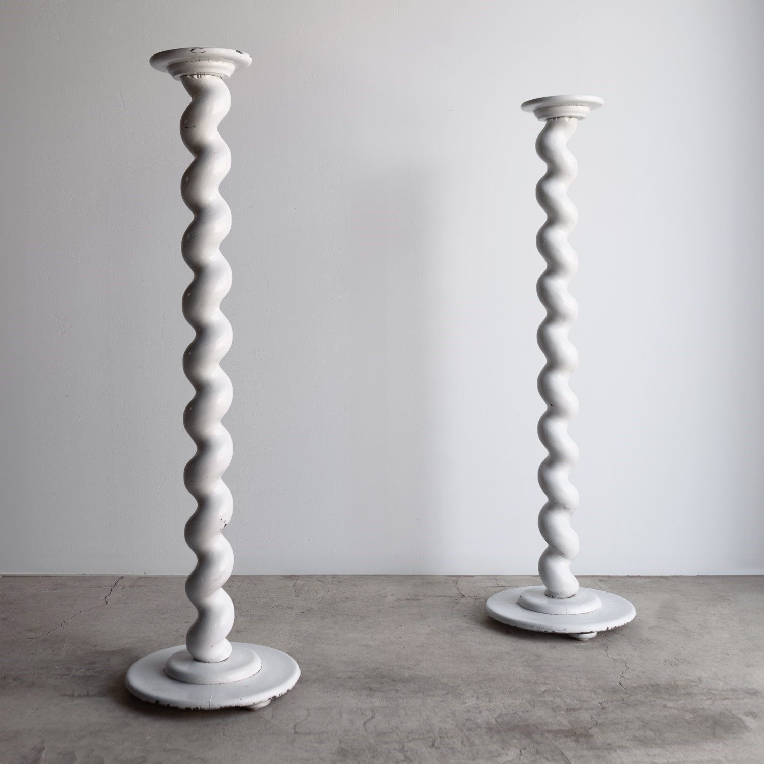 Pair Of Antique White Painted Barley Twist Torchere Stands, Early 20Th Century