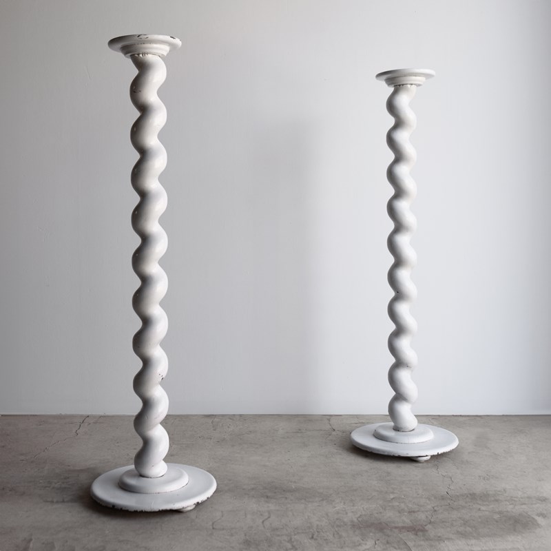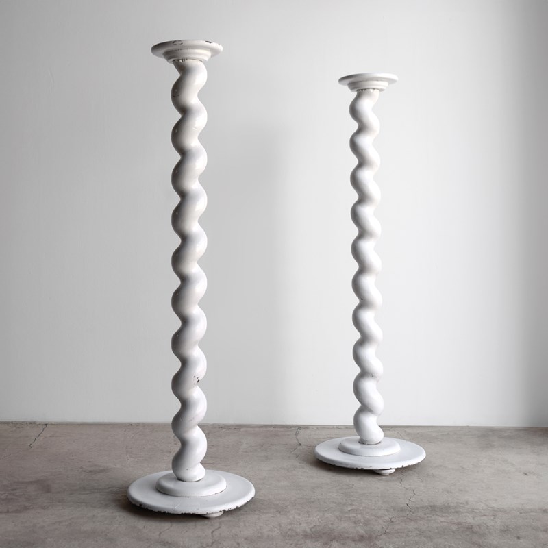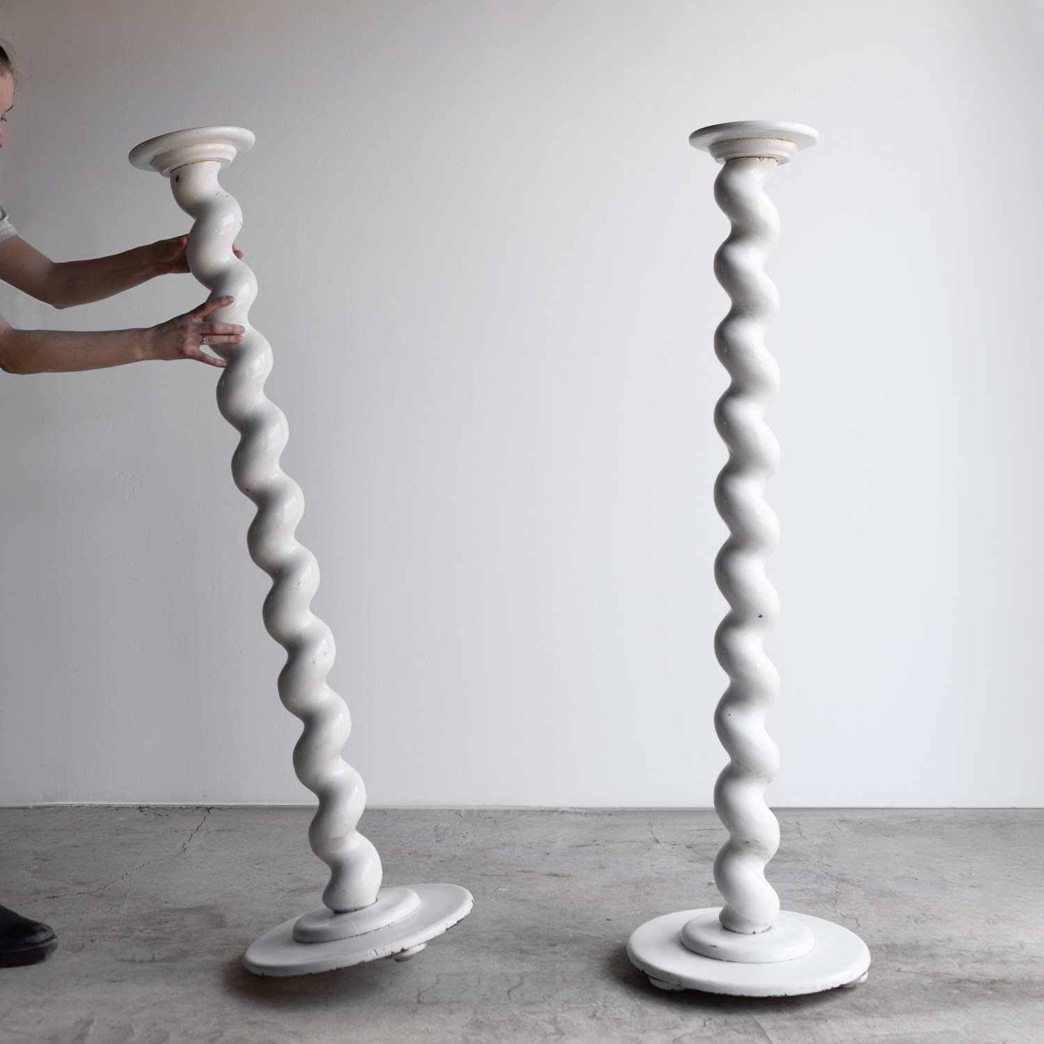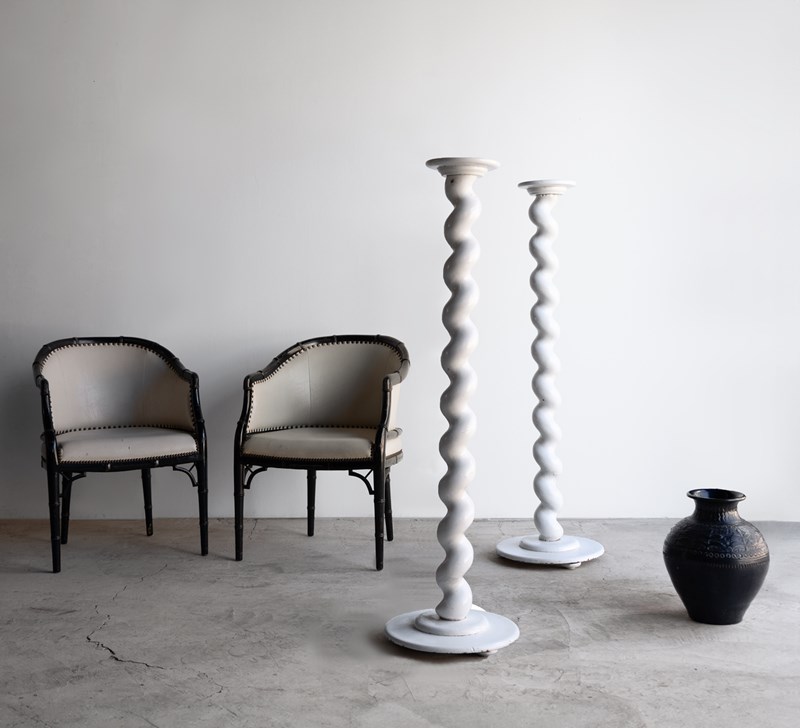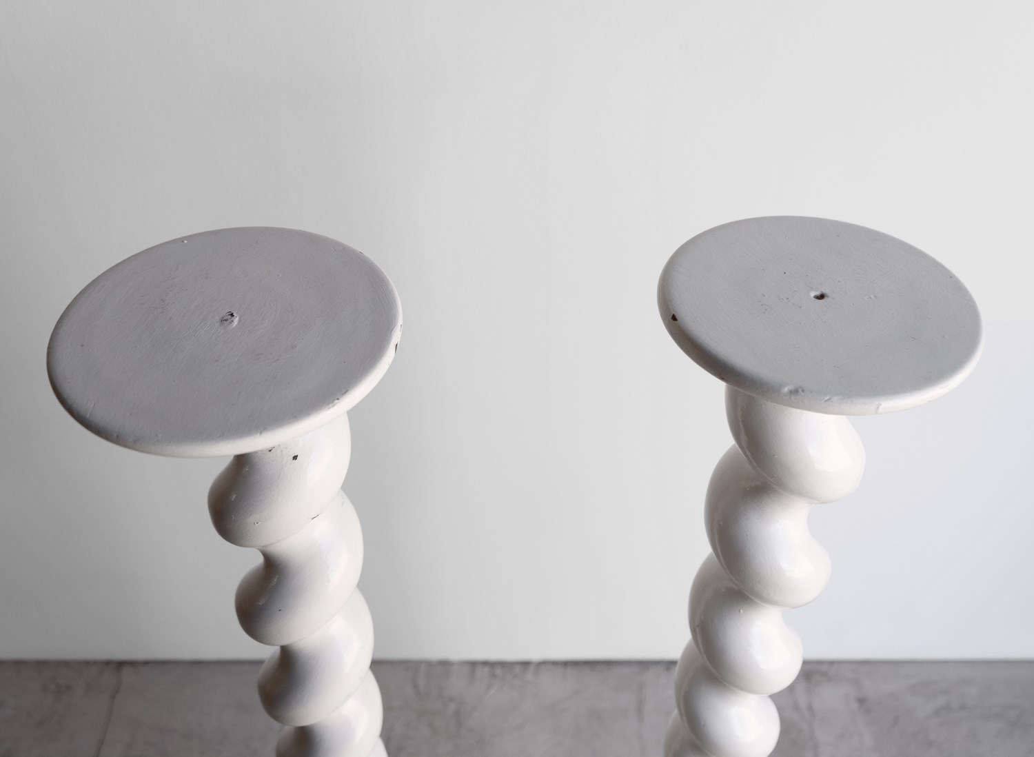 Pair Of Antique White Painted Barley Twist Torchere Stands, Early 20Th Century