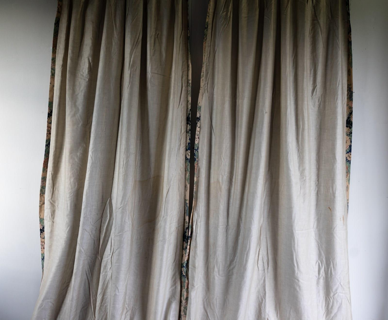They are in very good vintage condition with wear consistent with age and use, including some small, subtle marks that are only noticeable on close inspection but not really when hung. They are free from any tears or holes. The cotton back fabric has some watermarks from the condensation on the previous windows.