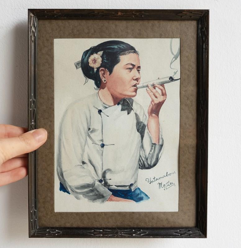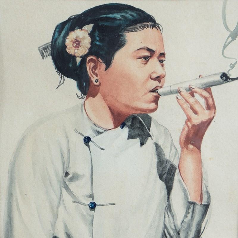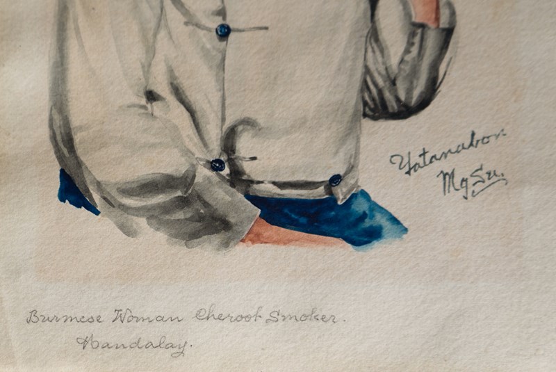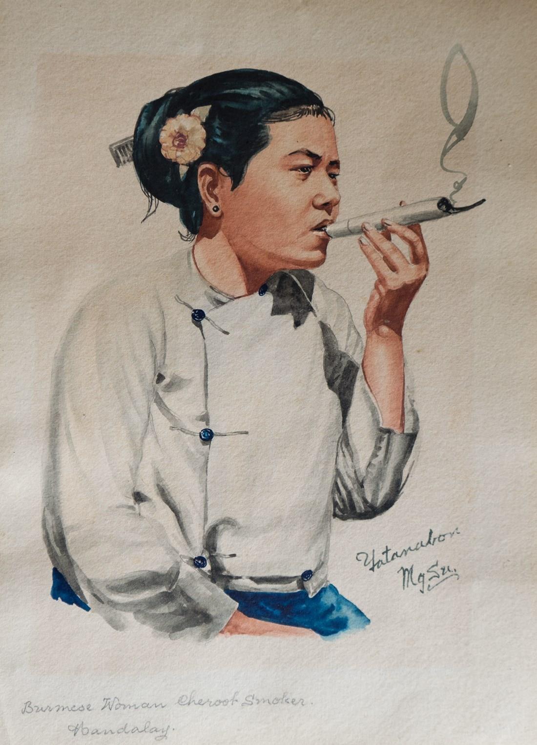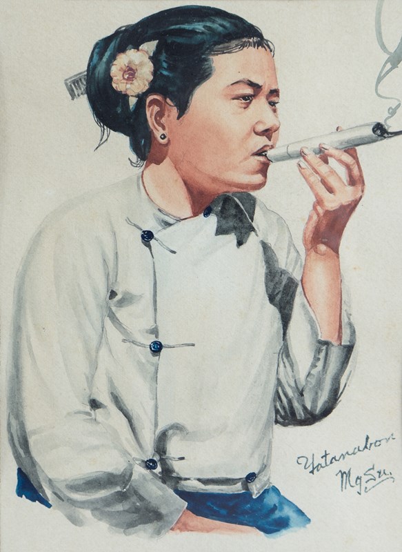 A typically characterful portrait by the artist, well known for capturing the essence of Burmese people in their everyday lives, smoking was a running theme throughout his work.