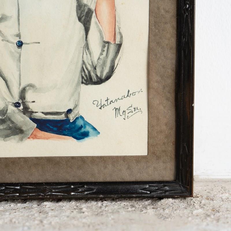 Portrait Of A Woman Smoking By Yatanabon Maung Su, Original Watercolour Painting