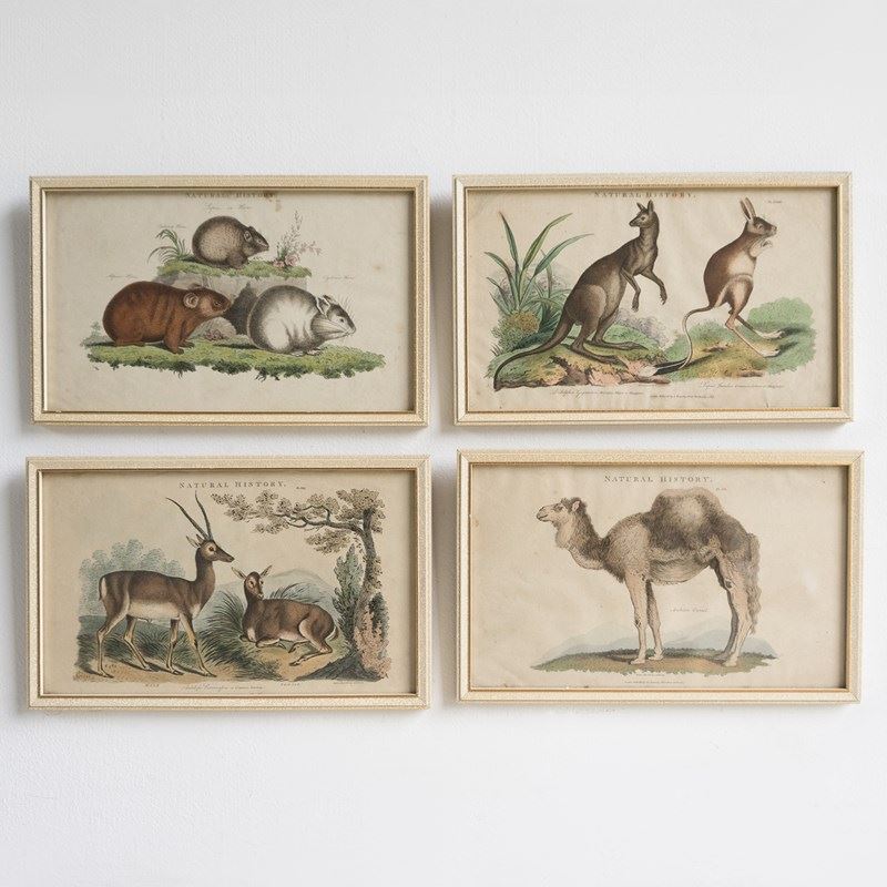 Set Of Four Antique Georgian Hand Coloured Animal Engravings, Early 19Th Century