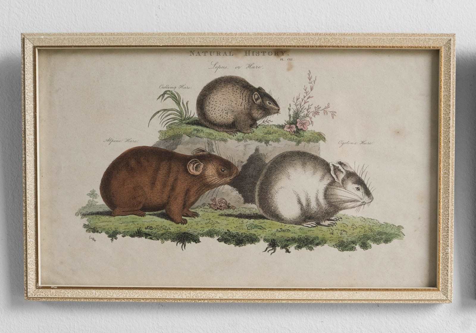Plate CLI - Depicts ‘Lepus or Hare: Calling Hare, Alpine Hare and Ogotona Hare’ (these are now known as Pika, rather than Hares, relatives of the Hare from Asia and North America).