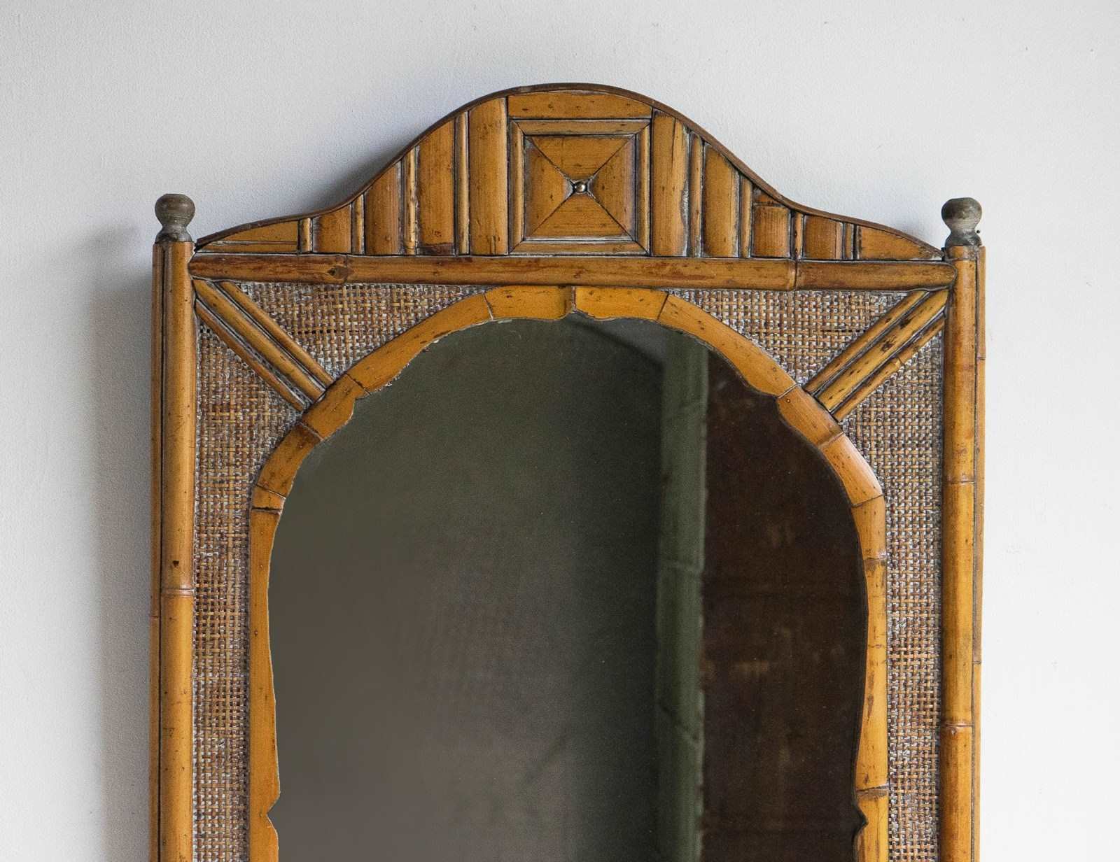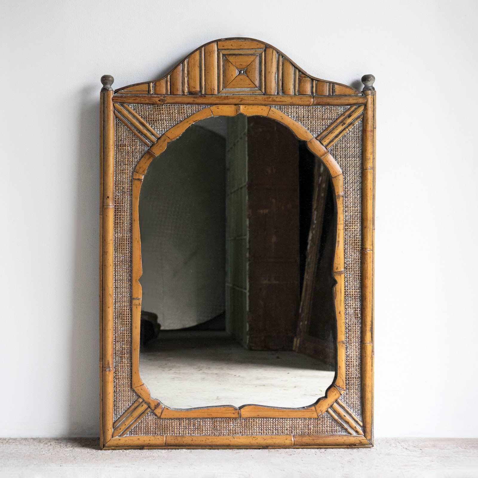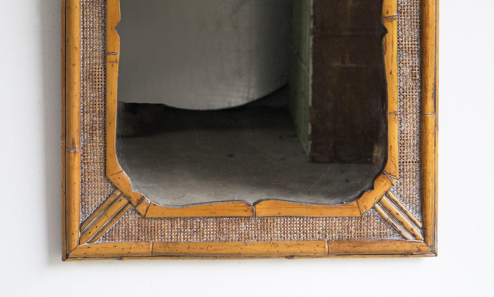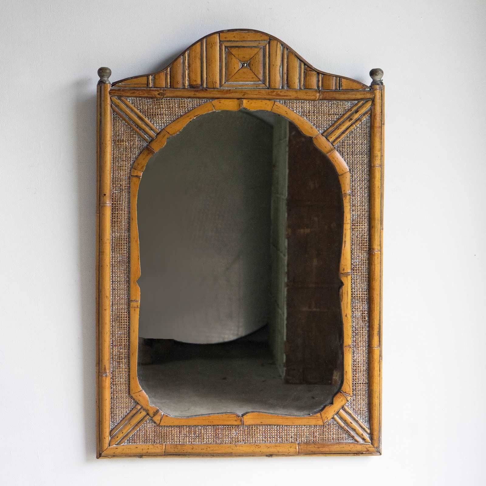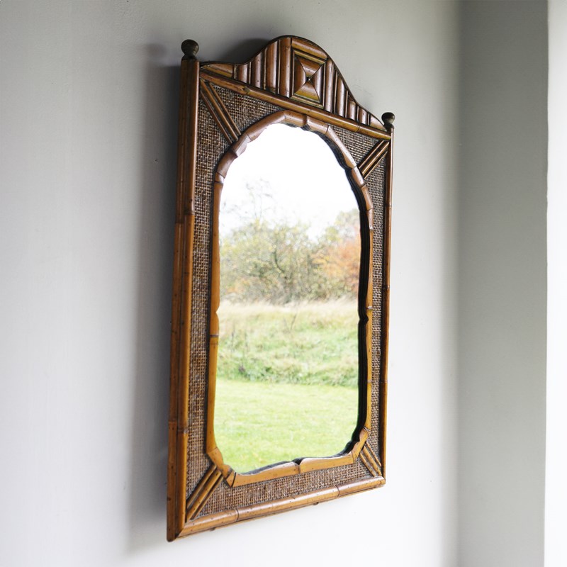 Vintage Bohemian Bamboo And Rattan Framed Wall Mirror, Mid 20Th Century