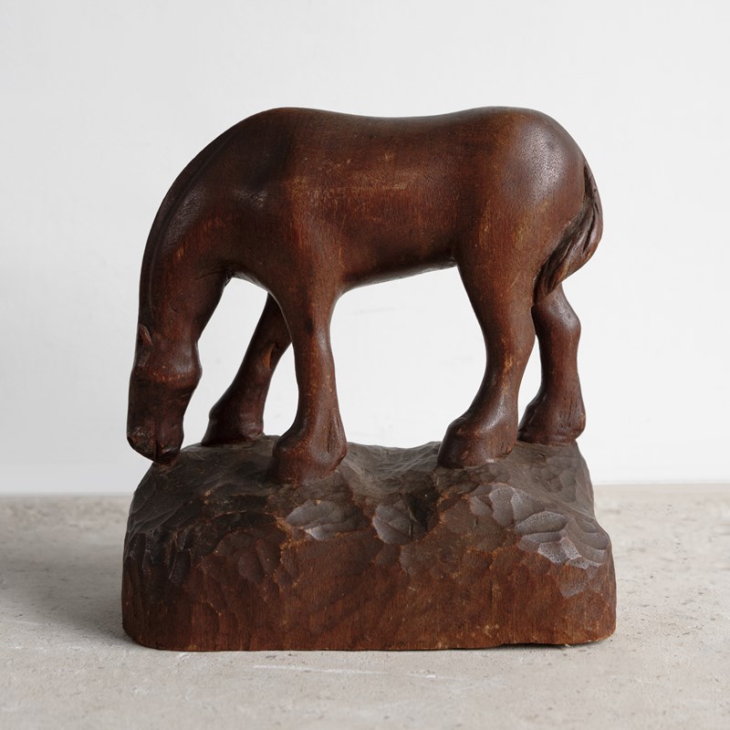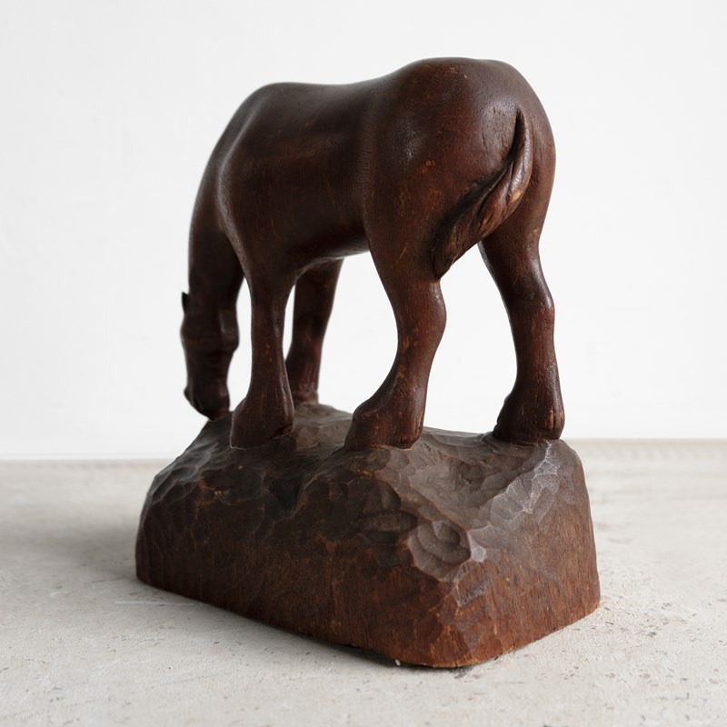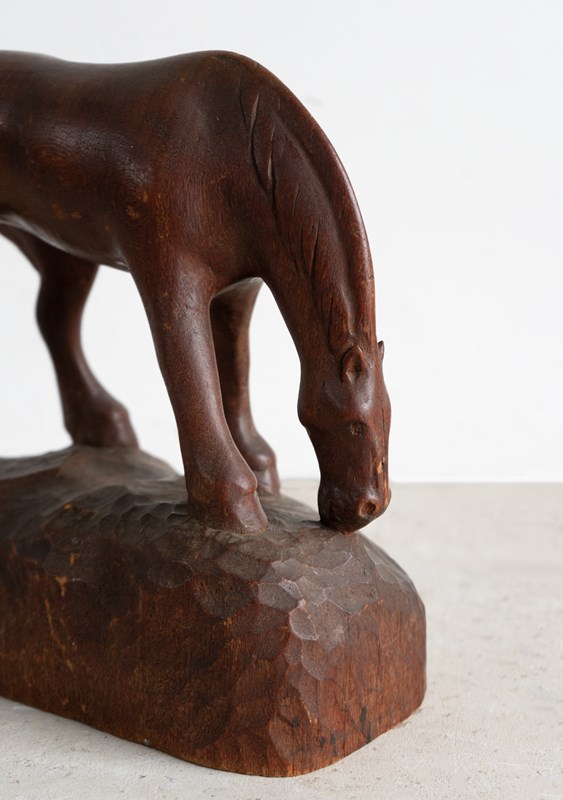 Skilfully carved from a single piece of wood with beautiful contrast between the smooth horse and rougher base, where the artist has left the chisel marks to emulate the ground.