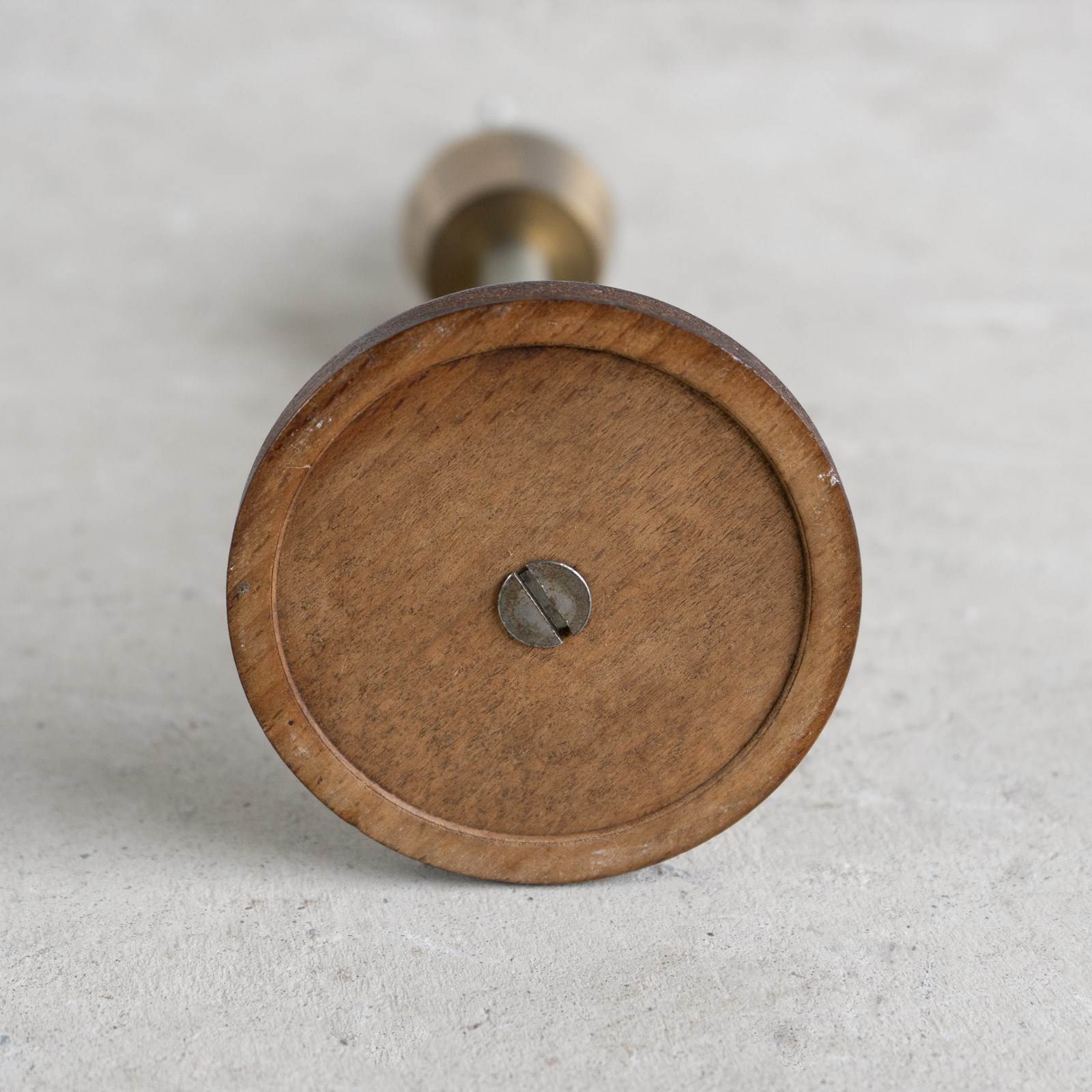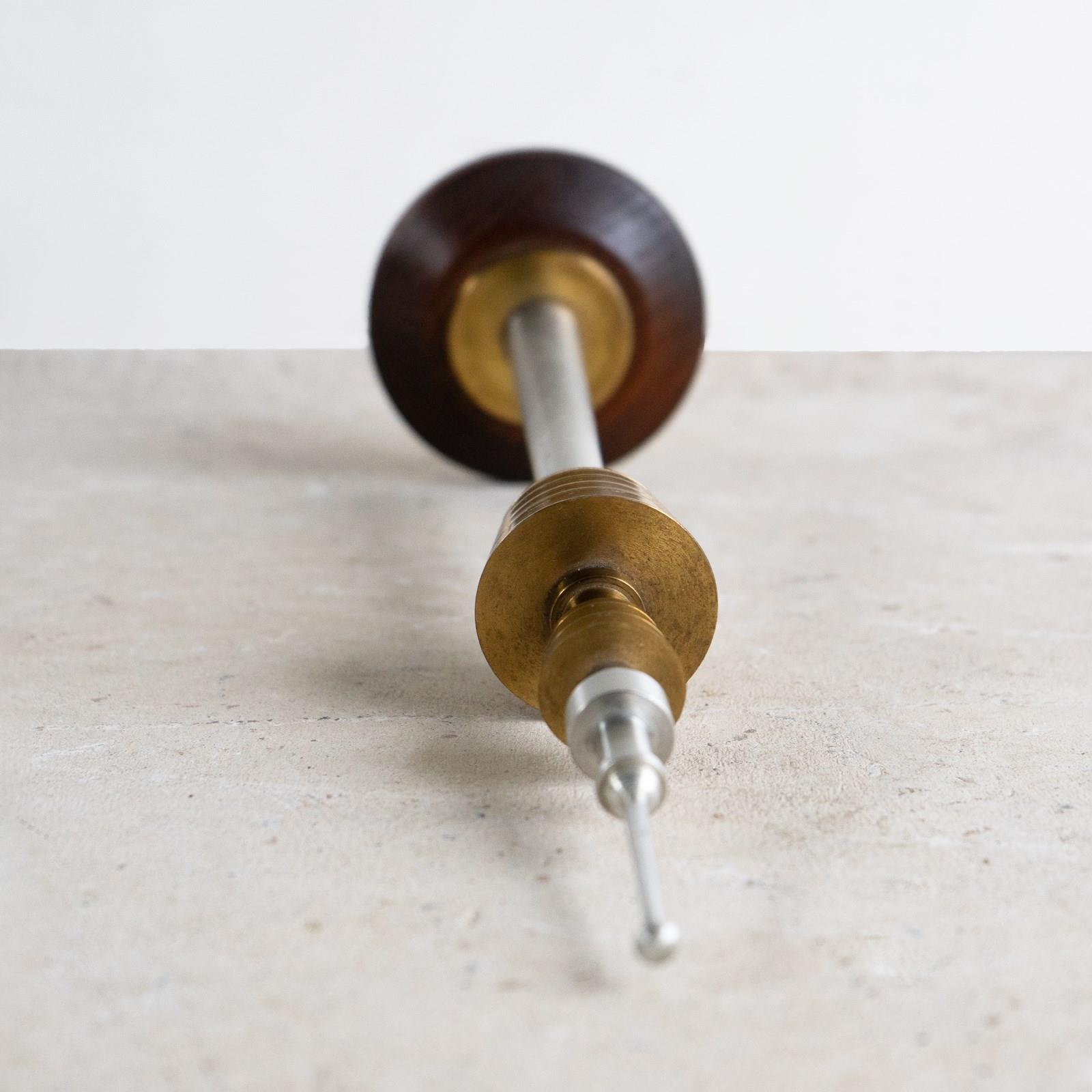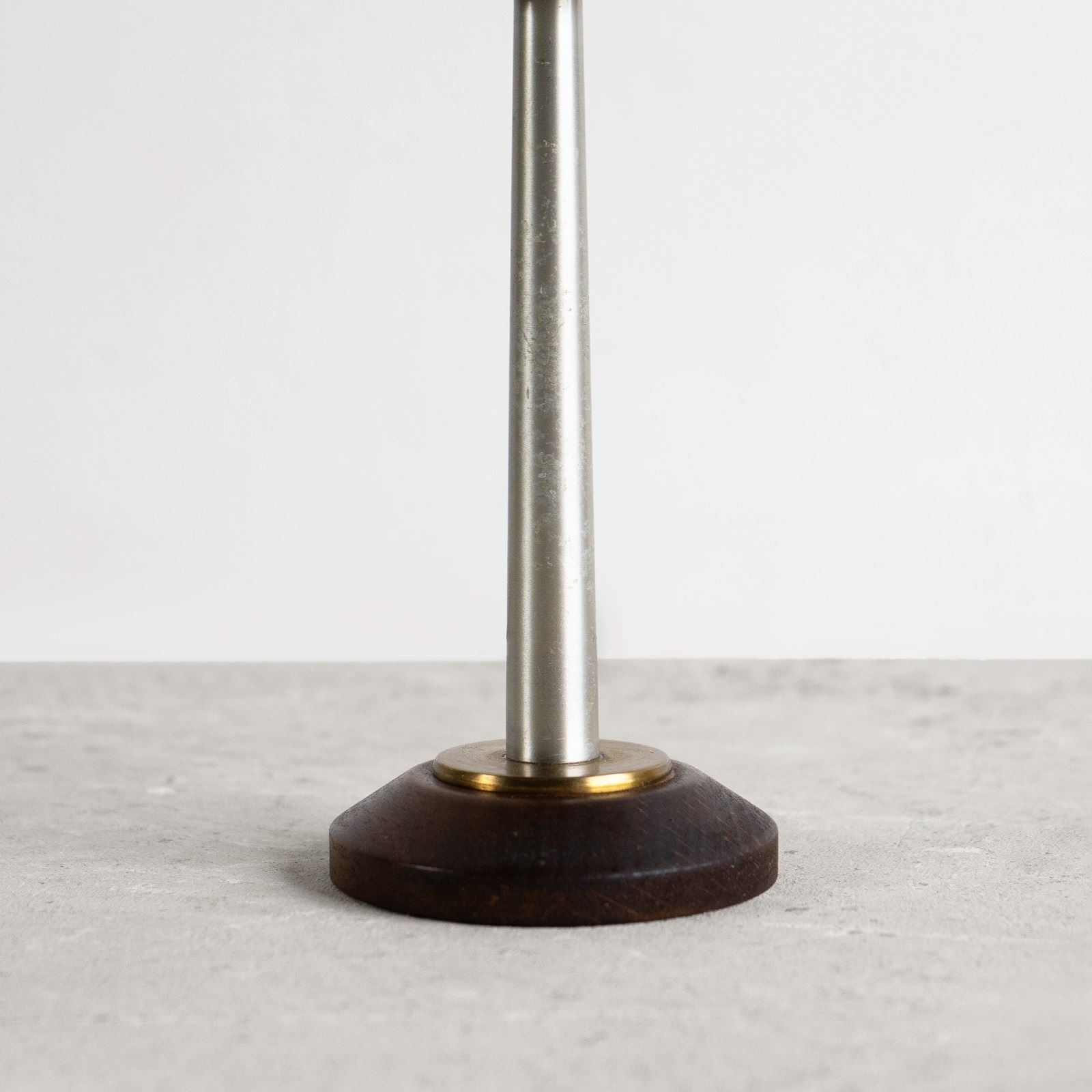 A good quality and stylish space age model made from aluminium and gilt brass with a circular wooden base (possibly teak).