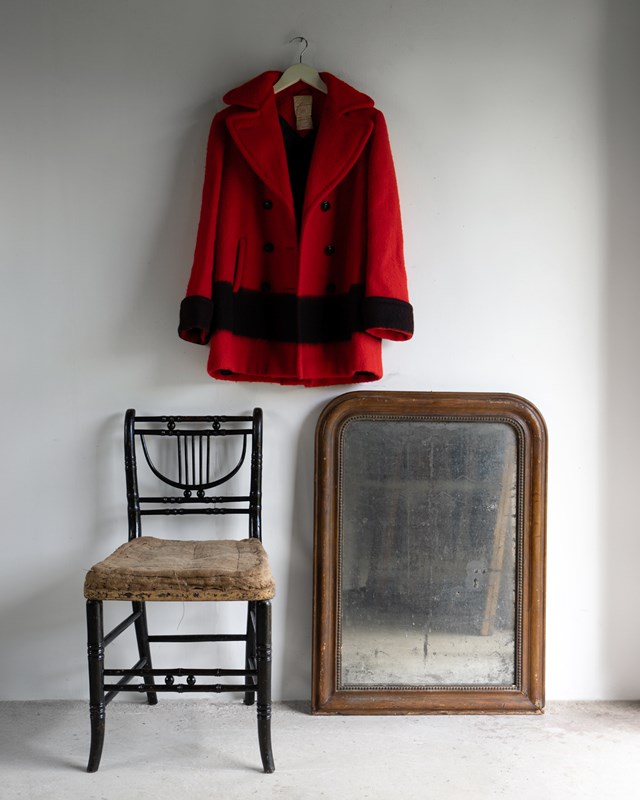 It is in very good vintage condition with only minor wear commensurate with age. It has been well cared for. We can’t find any damage to speak of, with no holes or tears. There is a small mark on one lapel, which is quite faint. I am not sure if this is a stain or whether it is a small area of wear.
