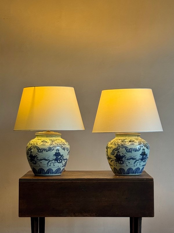 A Pair Of Chinese Blue And White Porcelain Lamps