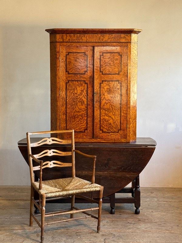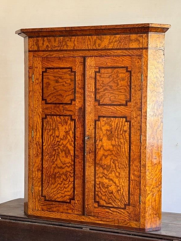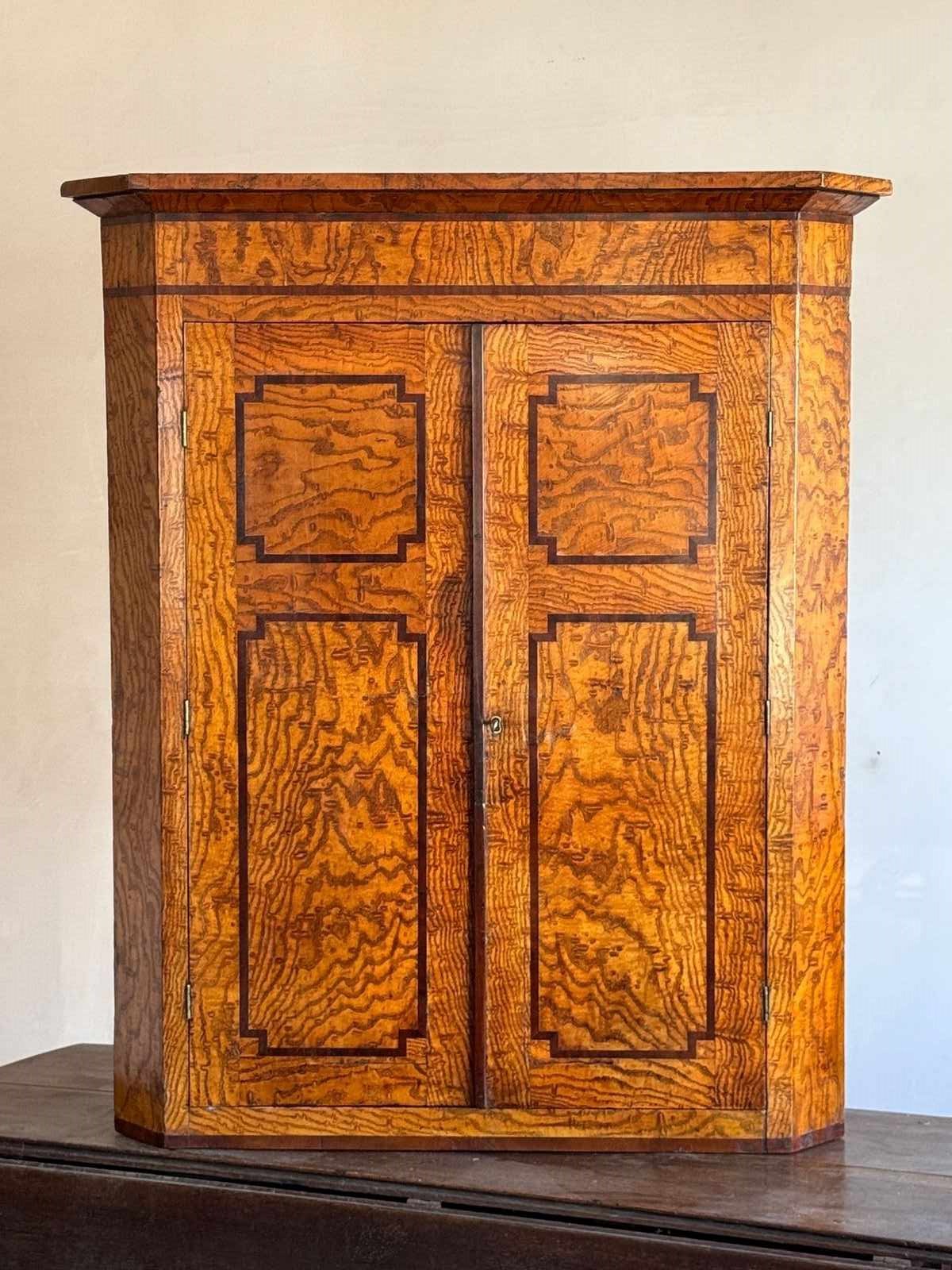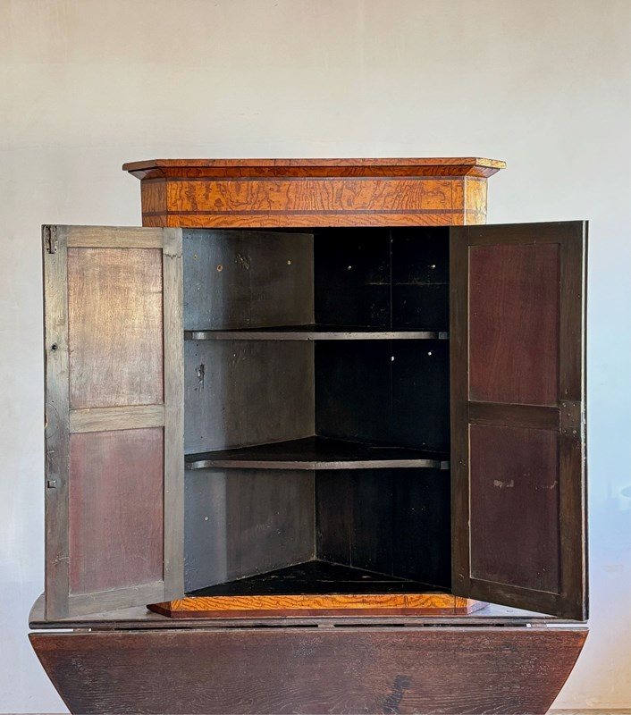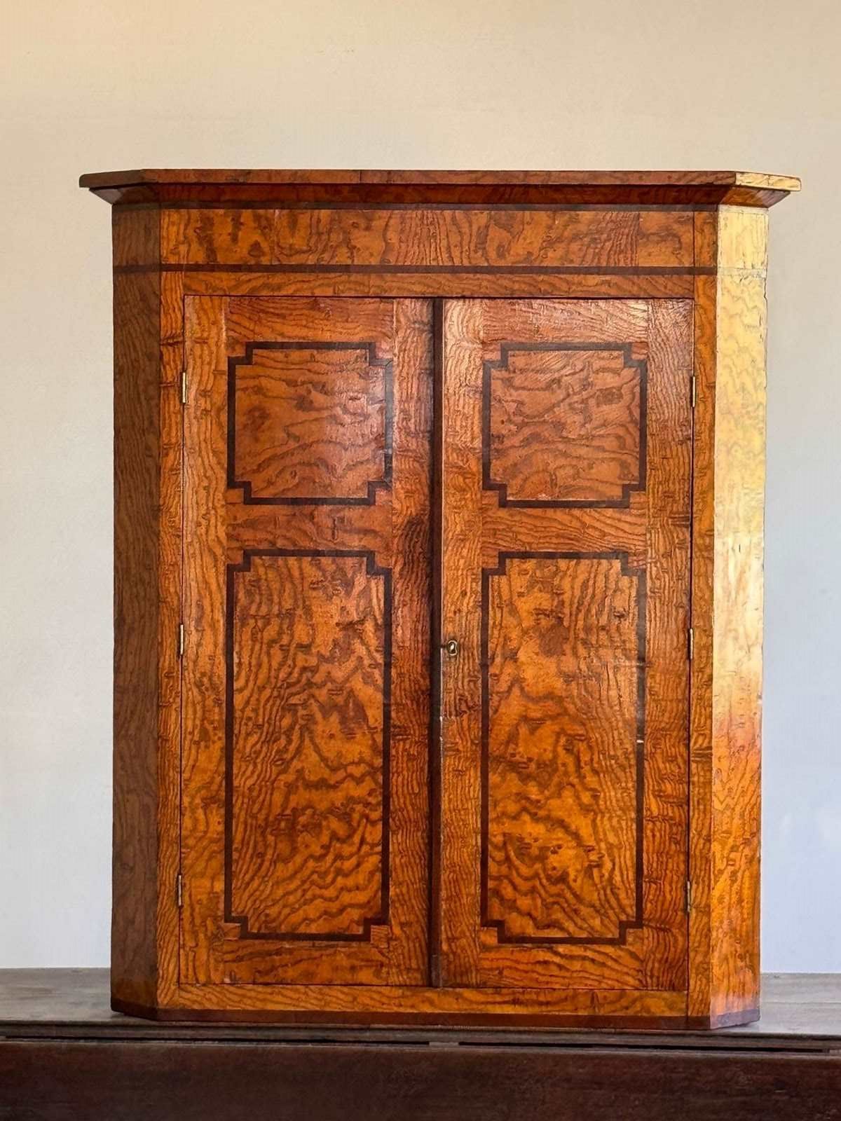 An attractive Georgian Corner cupboard with a pine carcass veneered in Hungarian ash. C.1800