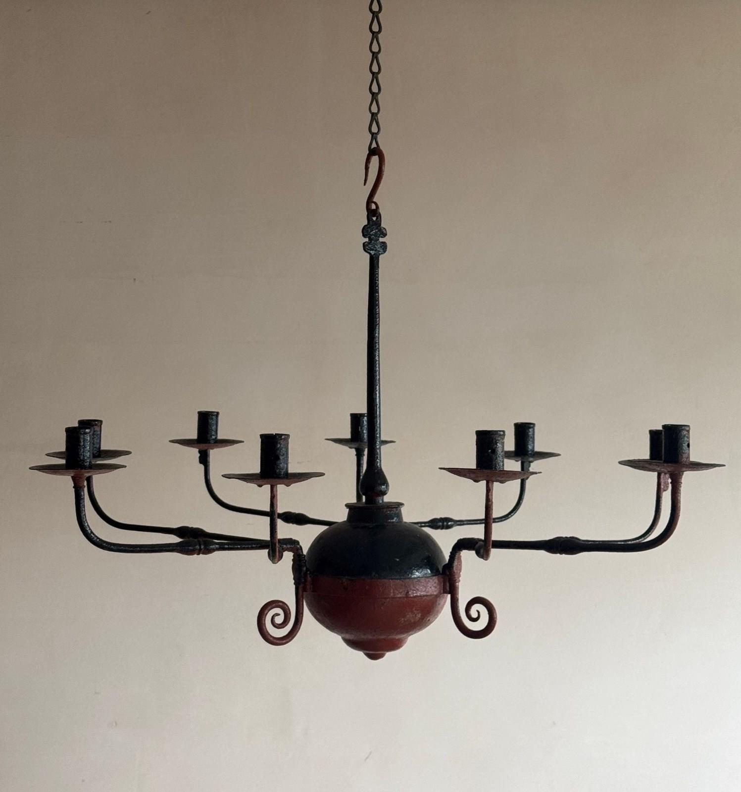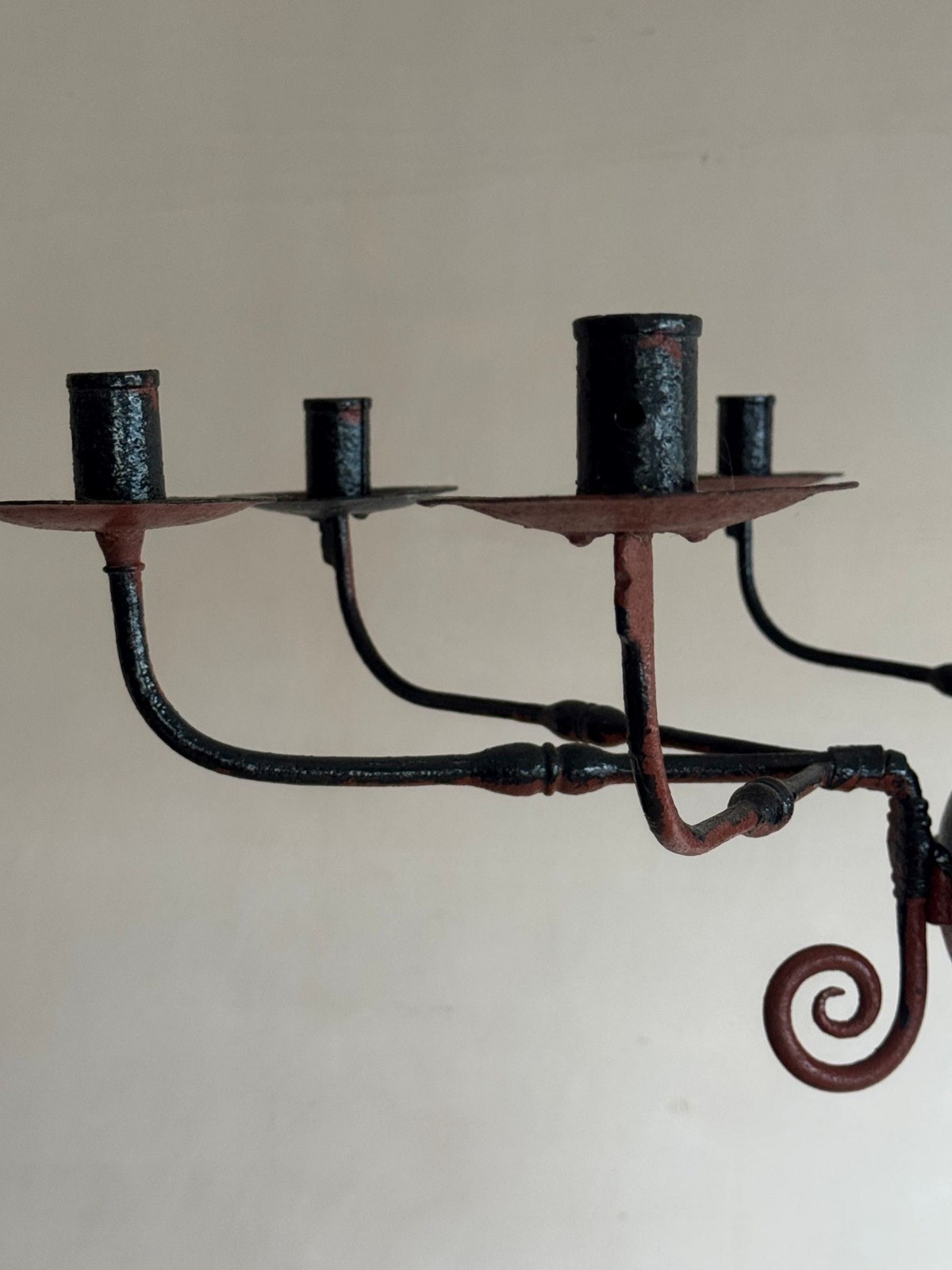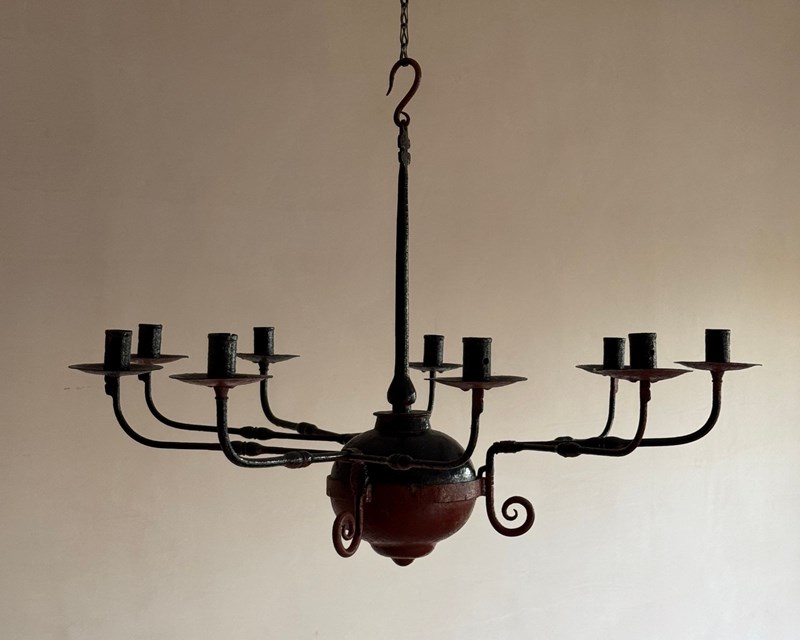 A wrought iron 9 arm candelabra. In a 17thC style.
