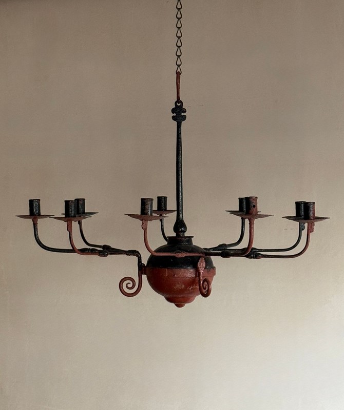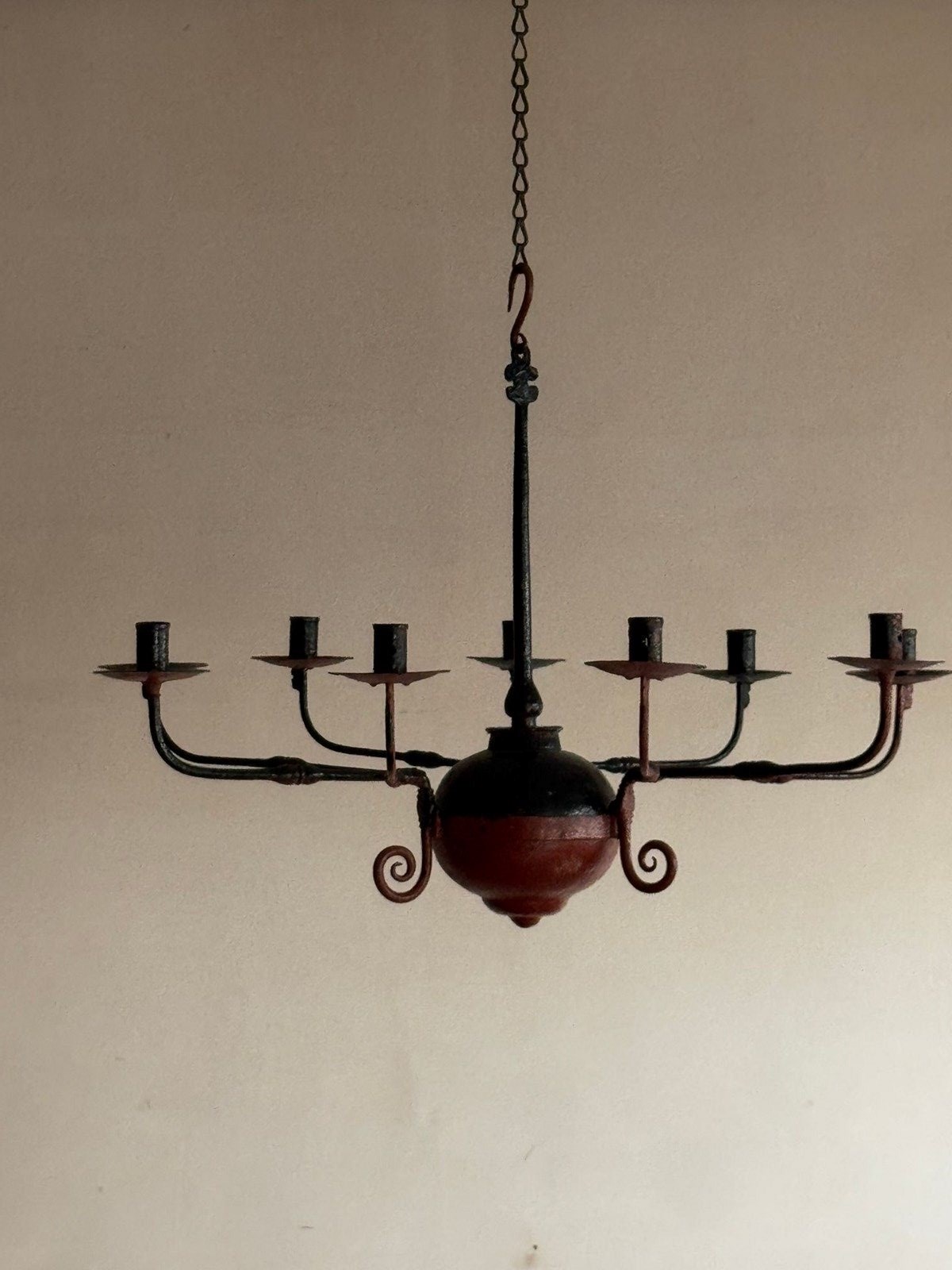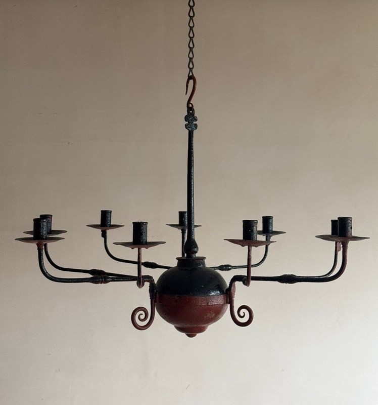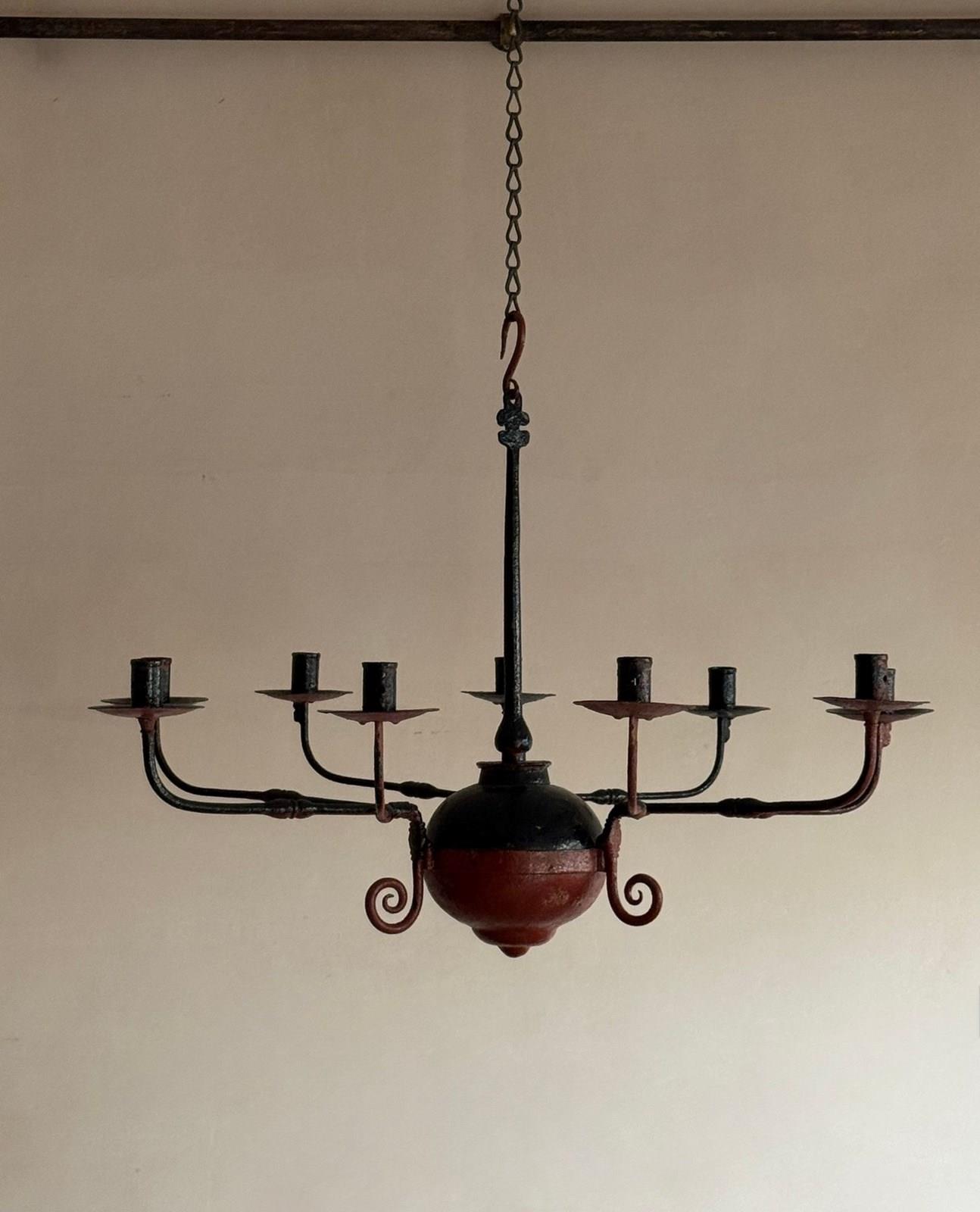 A wrought iron 9 arm candelabra. In a 17thC style.