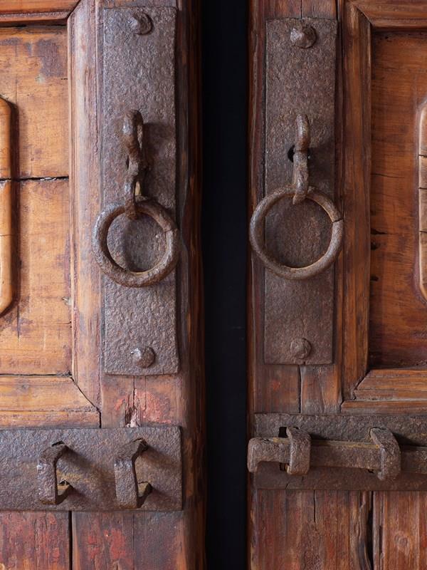 An extremely charming and decorative pair of doors, the wood and the iron work both provide a huge wealth of patina and character. At over 2 inches thick and two and a half metres tall, they also speak of quality and versatility. Whether they end up fitted over an alcove to make a beautiful cupboard, incorporated into an internal partition wall, forming an incredible entrance to a summer house or simply used as decorative panels they bring instant warmth and an impressive grandeur.