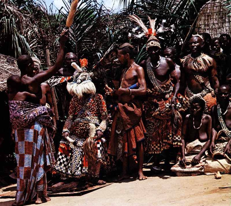 This example is a ceremonial skirt, either a ntshak (women's skirt) or a mapel (mens skirt). The red panels are a prerogative of the royal clan, while the cowrie shells are also indicative of power and wealth. See the last images on the listing, taken by photo journalist Angelo Turconi, of dancers wearing strikingly similar textiles at the Royal Court, Zaire in the 1980’s.