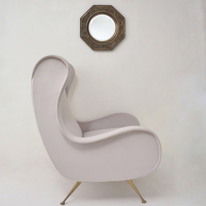 With applied grapevine & foliate decoration this mirror is strongly influenced by the Arts & Crafts Movement but kept modern with its minimal form. The combination of the geometric eight-sided frame and the soft, rounded interior mirror makes it a versatile piece for both period style and modern interiors. It represents a high-quality example of early 20th Century metalwork, focusing on durable materials and clear, nature-inspired craftsmanship. It would sit elegantly over a mantle, sideboard, chest of drawers, in a cloakroom, or by the front door. It would suit a range of interiors such as Arts & Crafts, Art Deco, Hollywood Regency, Traditional, Country or Contemporary.