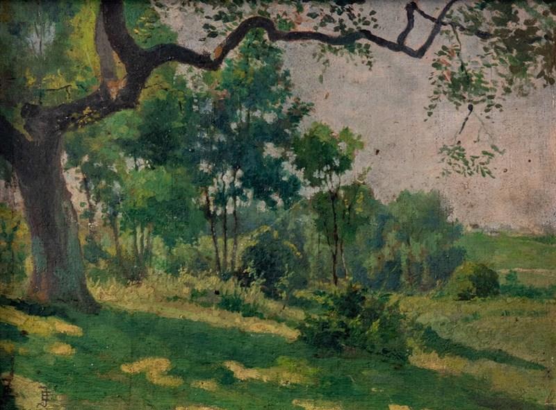 Alfred Garcement, Landscape With Trees, Oil Painting On Board, Early 20Th Centur