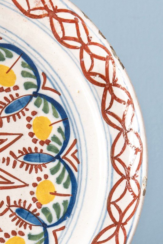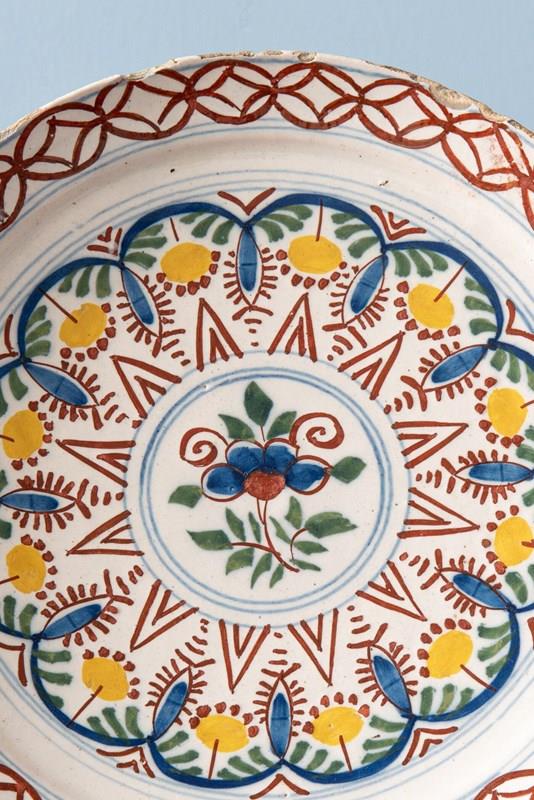 Dutch Delft Polychrome Patterned Plate, 18Th Century