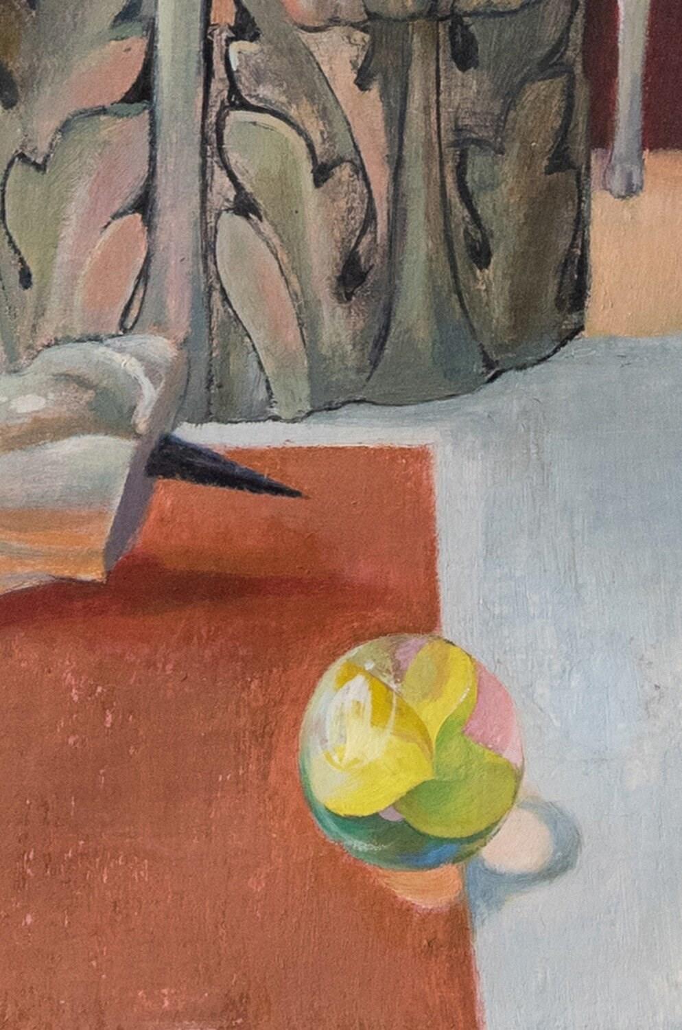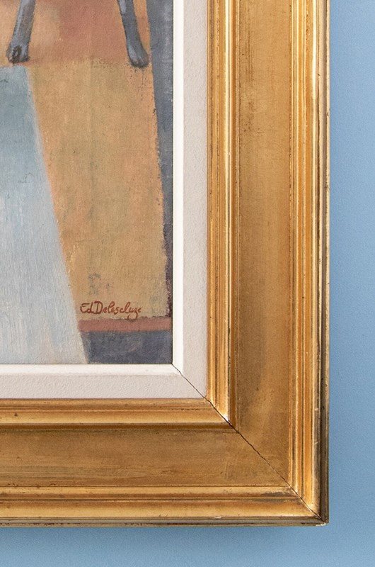 Delescluze studied at the Royal Academy of Fine Arts in Brussels and assisted his father, Jean Delescluze, head of the set design workshop at the Théâtre Royal de la Monnaie, later directing the studio himself from 1947 to 1959. His work spans from Art Deco to surrealism, evident here in this sophisticated, large-scale still life. Signed on the front and mounted in a substantial gilded frame, this is a rare and theatrical work, combining classical elegance with surrealist invention.