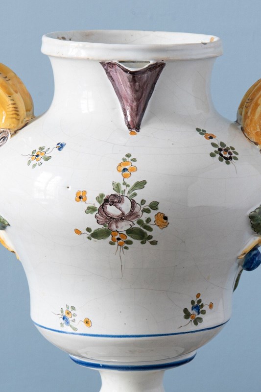 French Faience, Double-Handle Floral Vase, 18Th Century