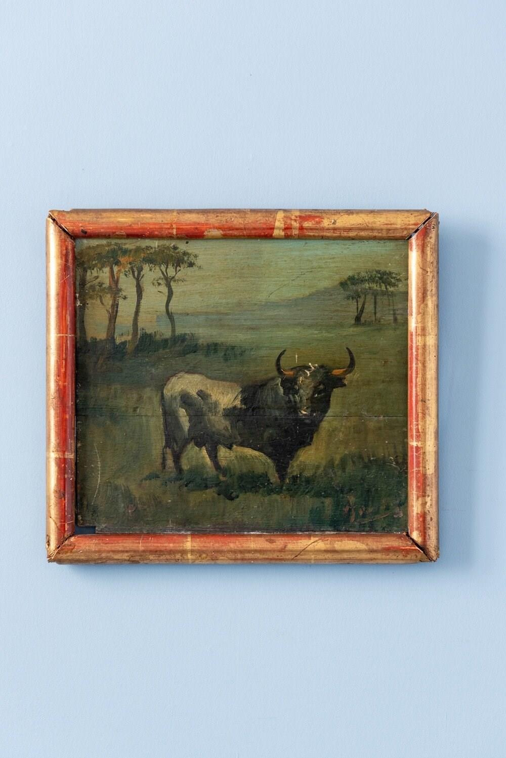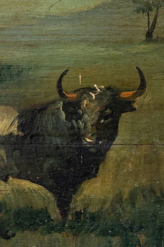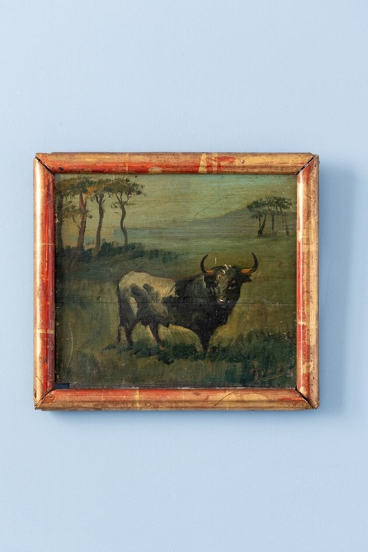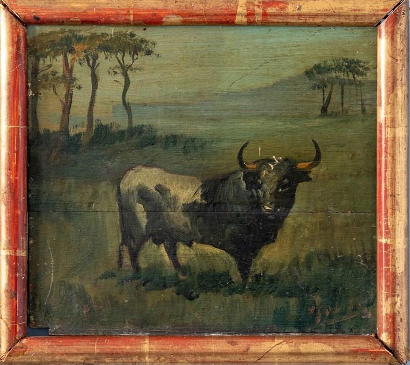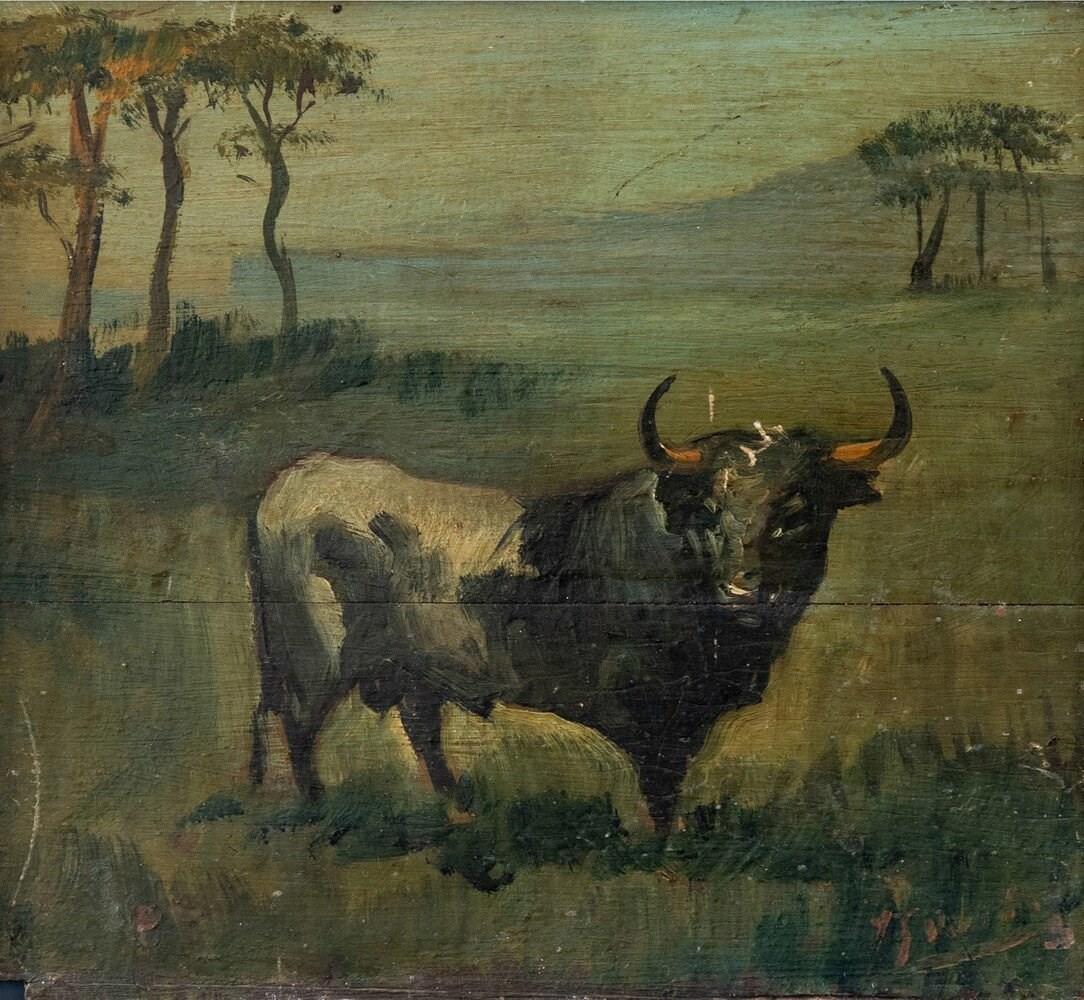 French School, The Camargue Bull, Oil Painting On Board, 19Th Century