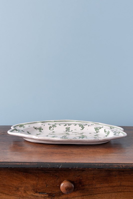 Moustiers Faience, Green Grotesques Oval Dish, C. 1740-1760