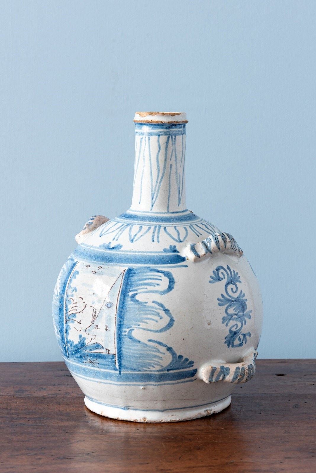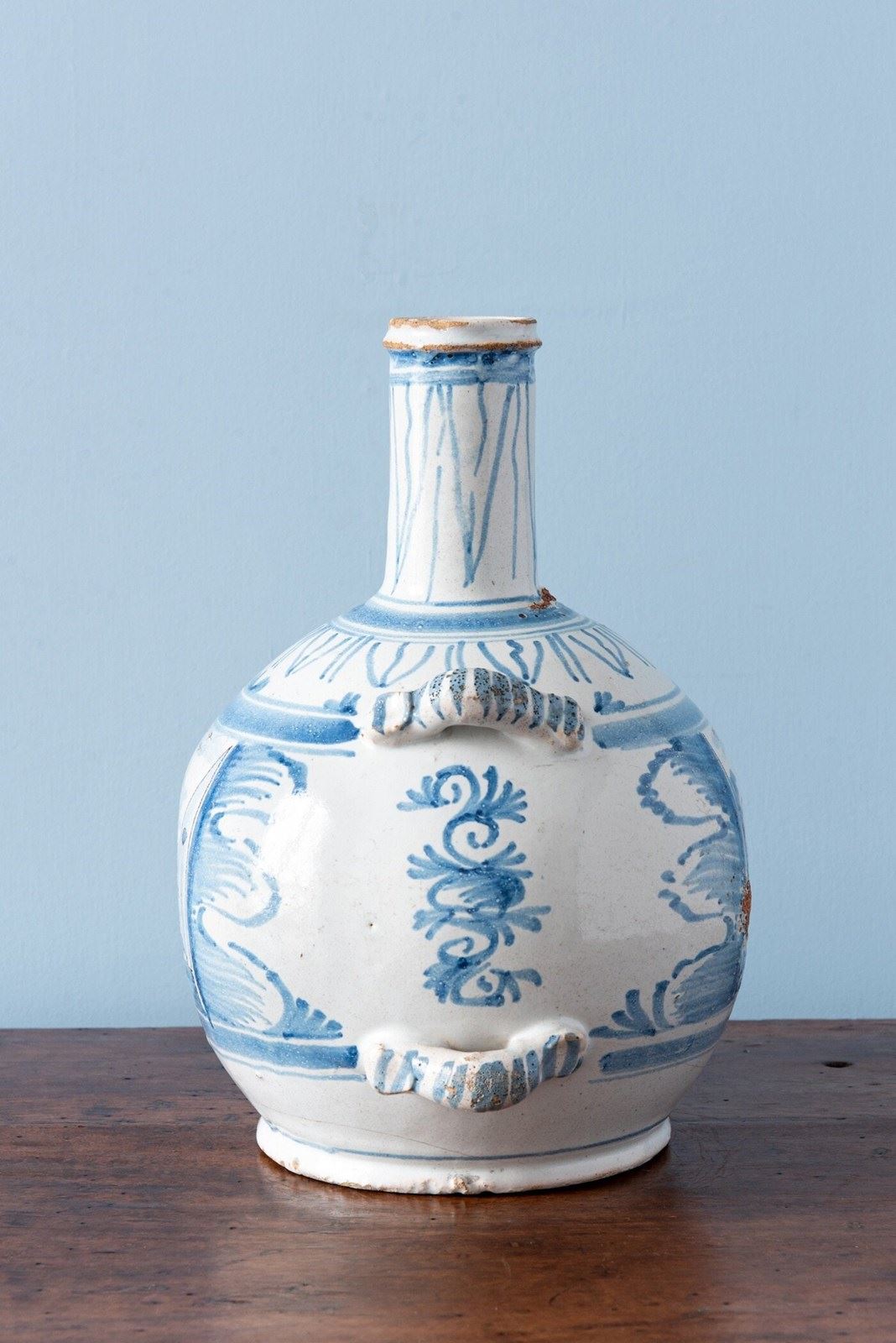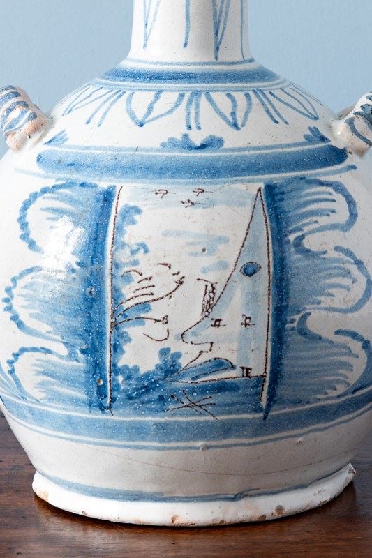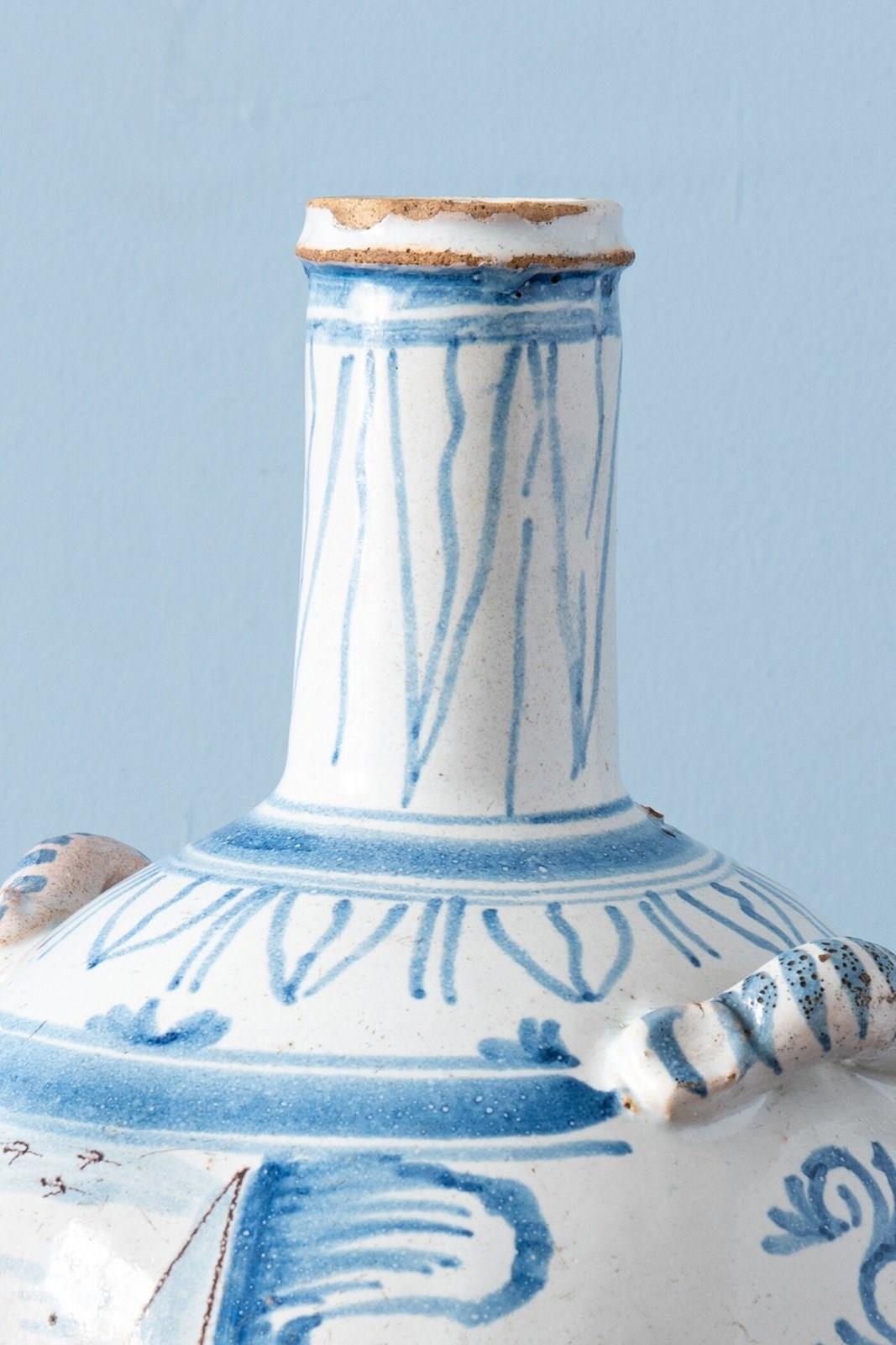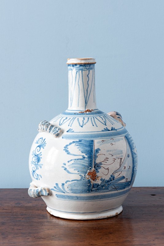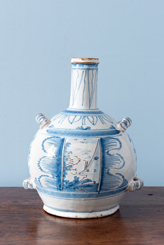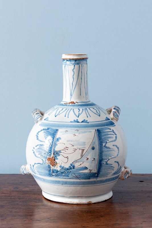 Nevers Faience, Blue & White Bottle, 18Th Century