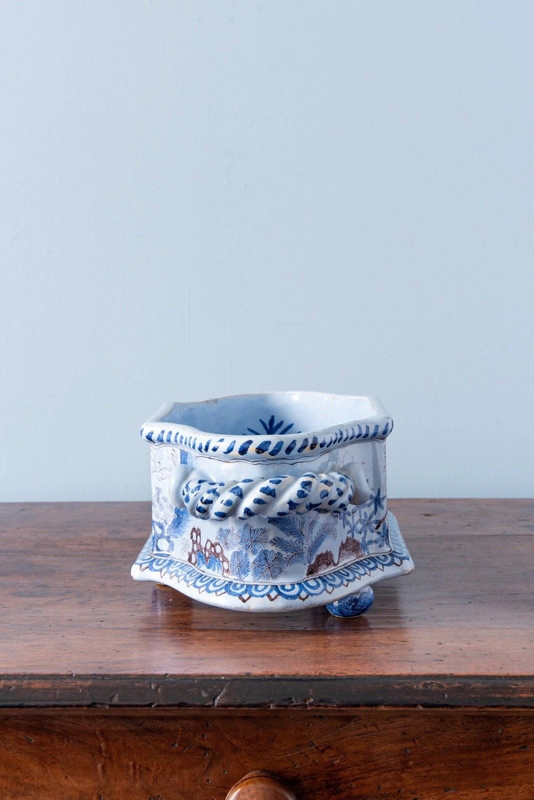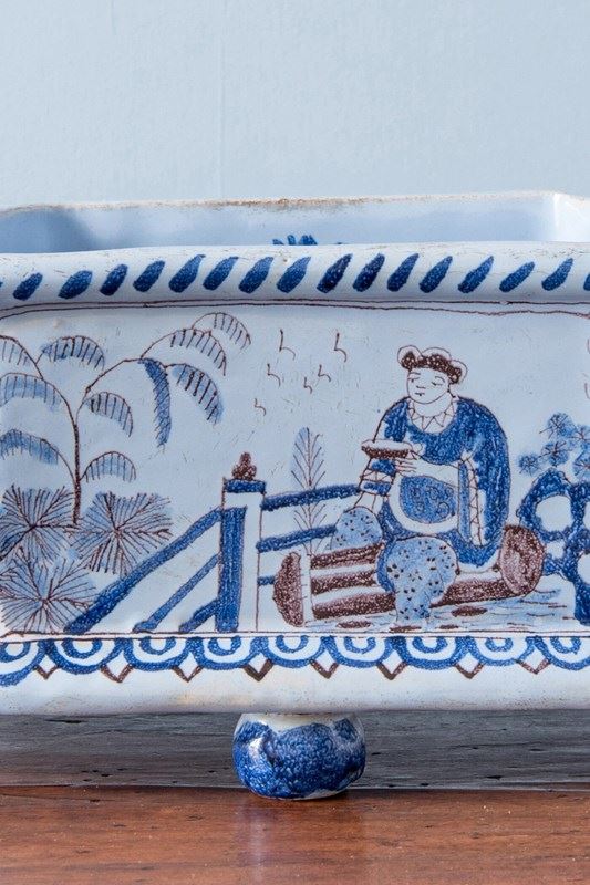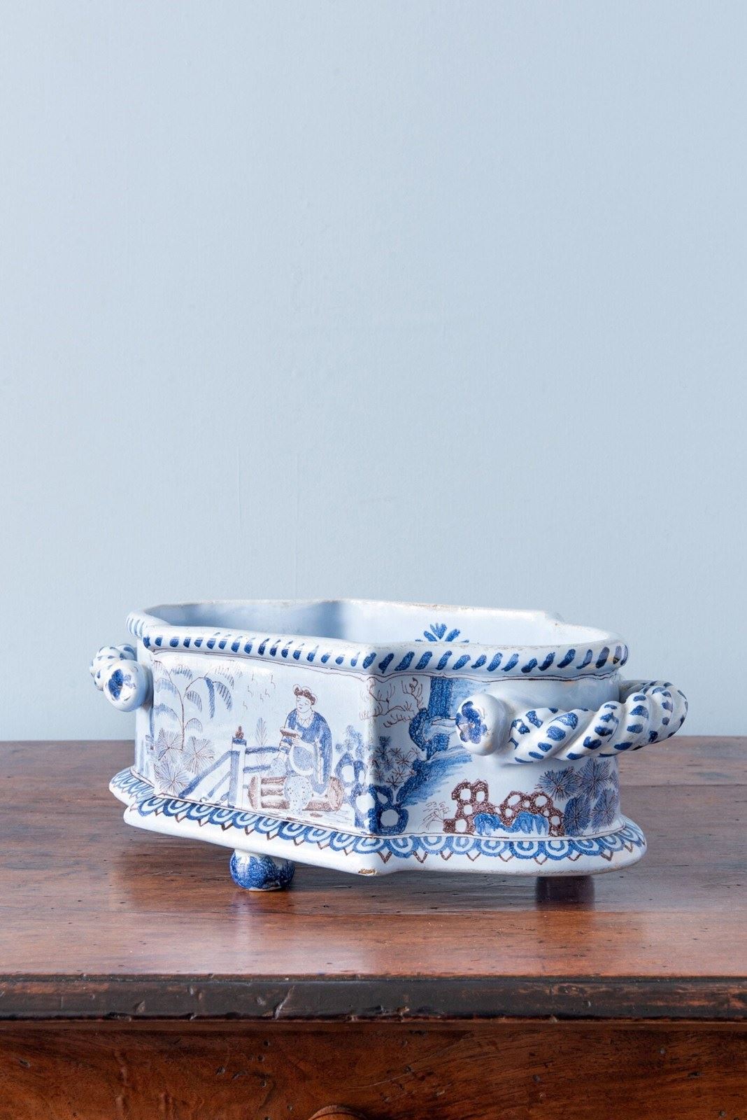 Nevers Faience, Chinoiserie Jardiniere With Twisted Handles, 19Th Century