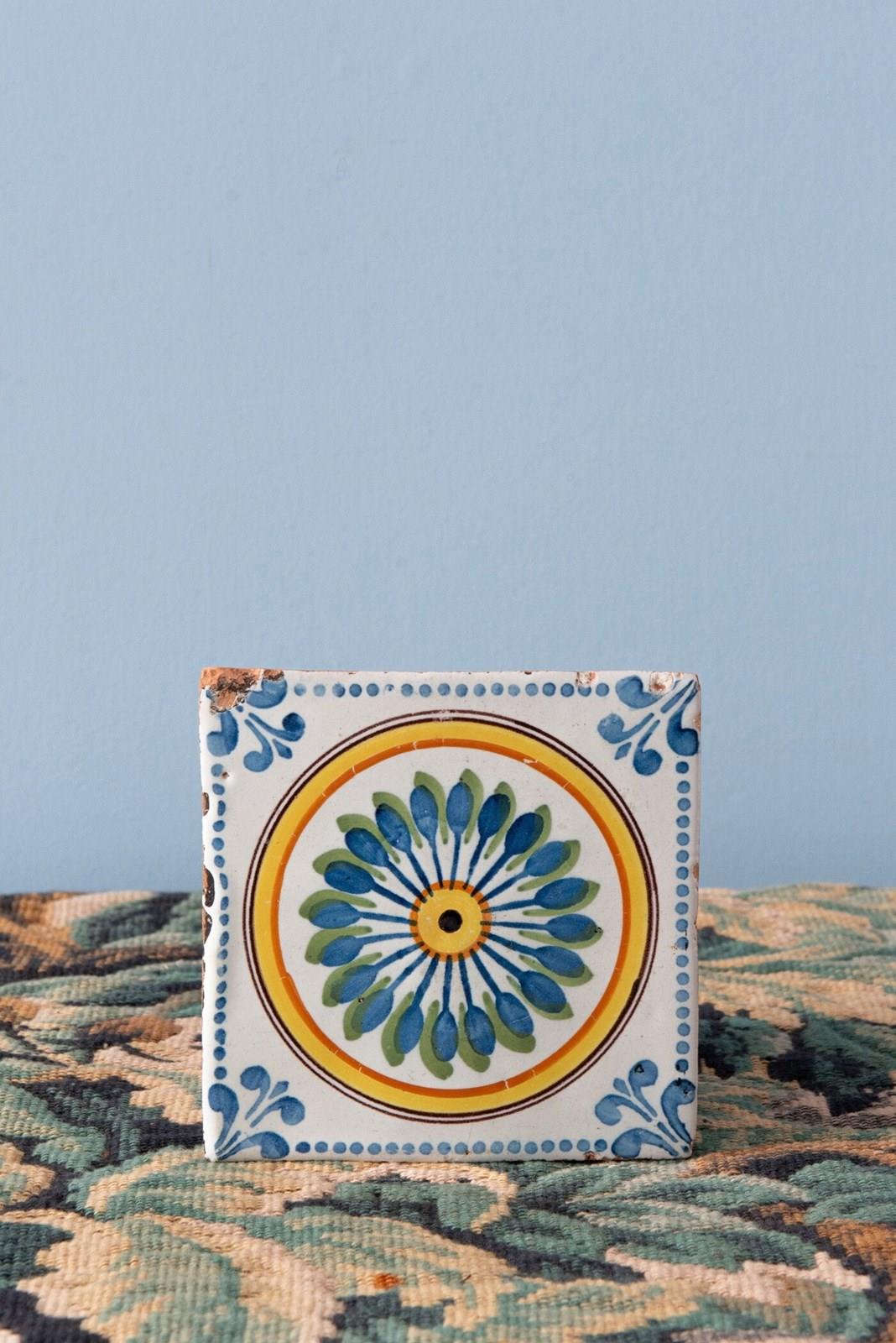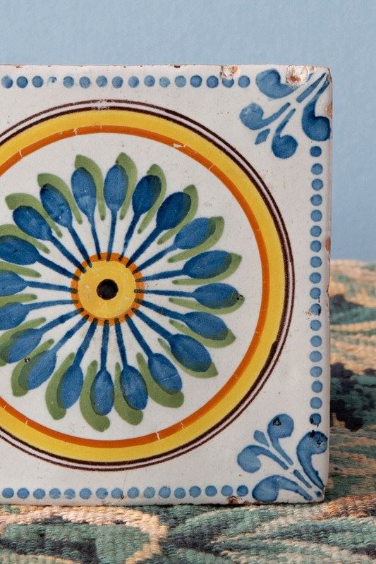 Nevers Faience, Two Polychrome Stencilled Tiles, C. 1830