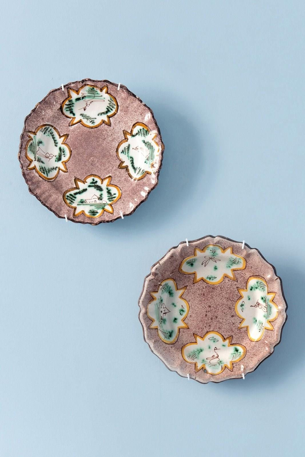 - Light wear to the edges, a hairline crack to one lip. One plate features a discreet hole for wall-display.