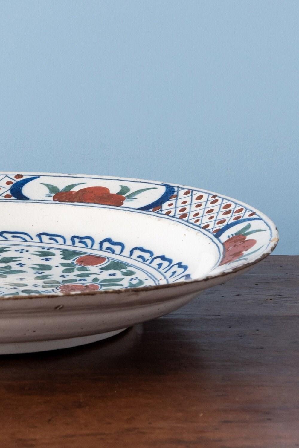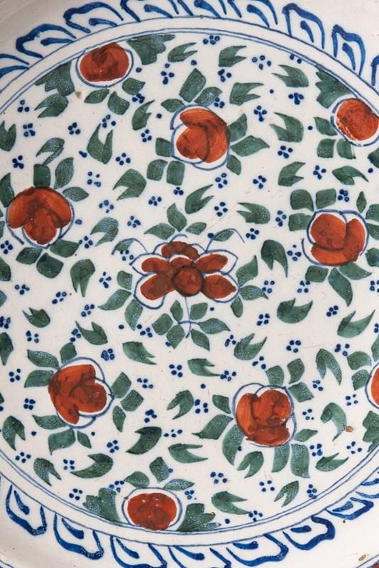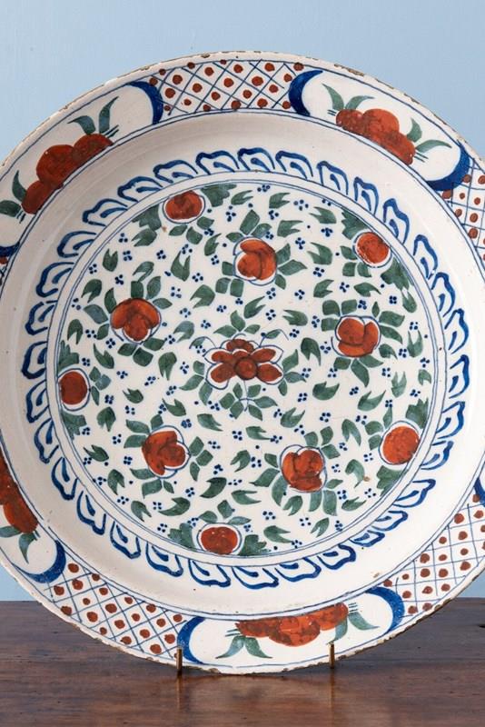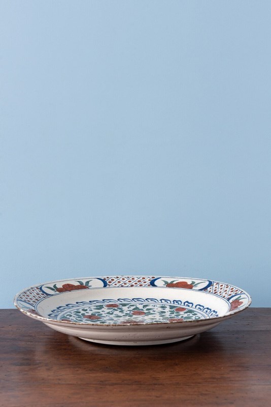 Pair Of Dutch Delft Polychrome Floral Dishes, 18Th Century