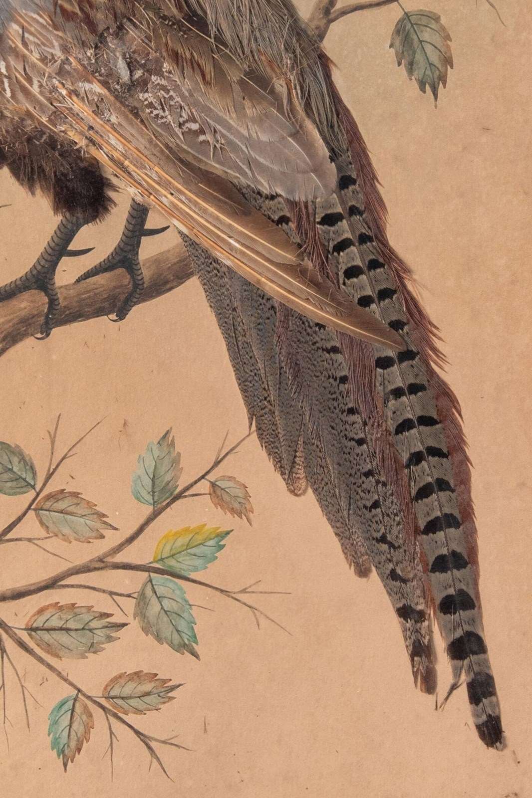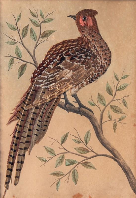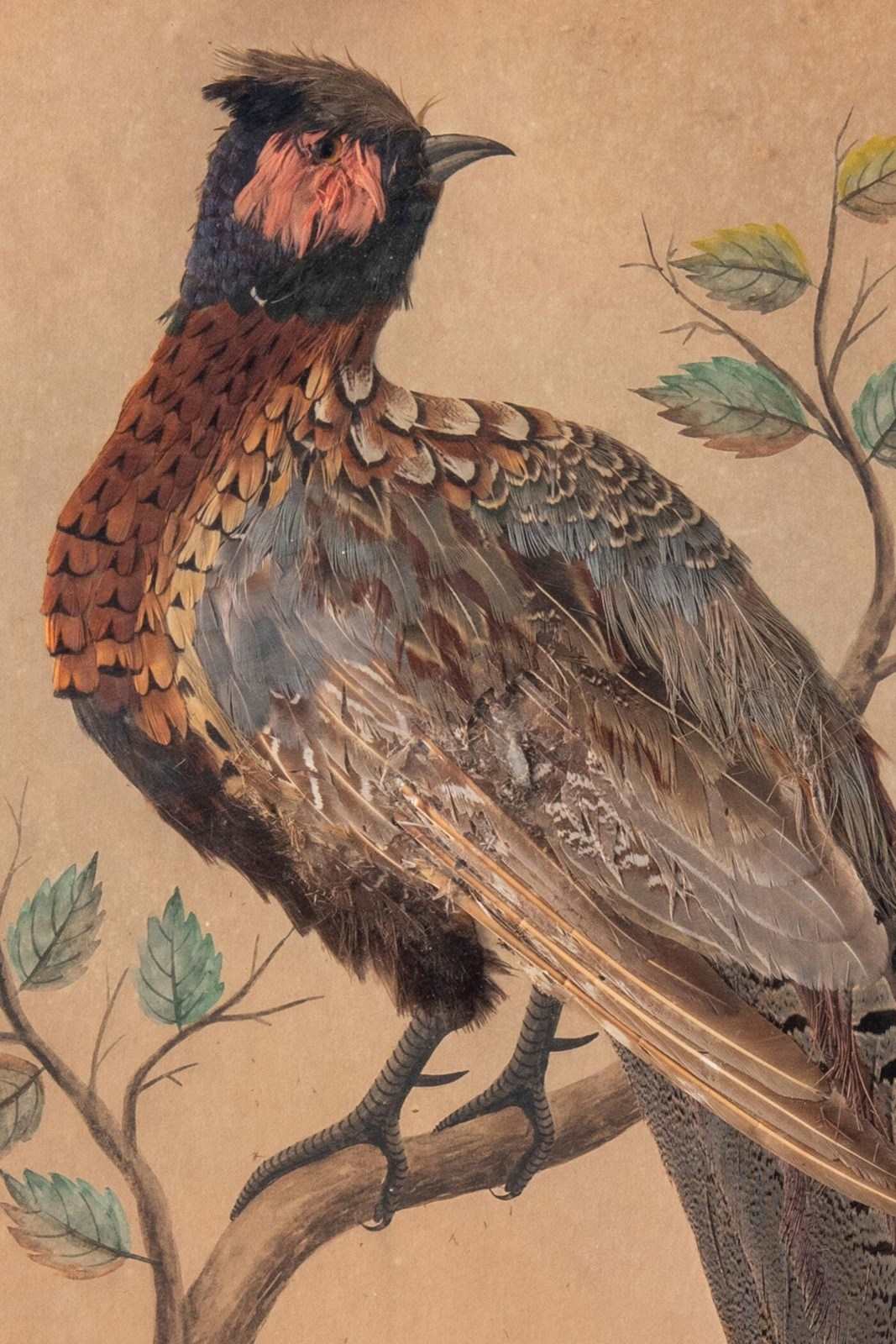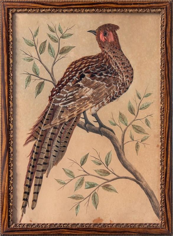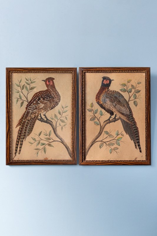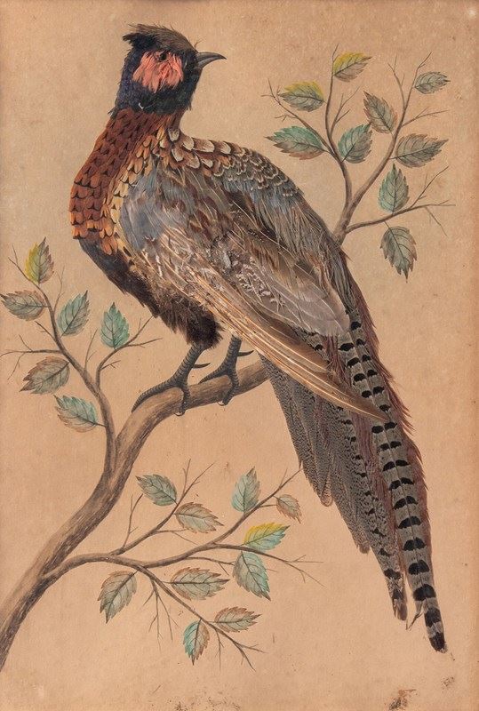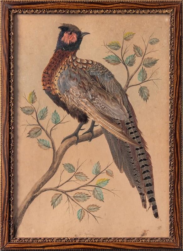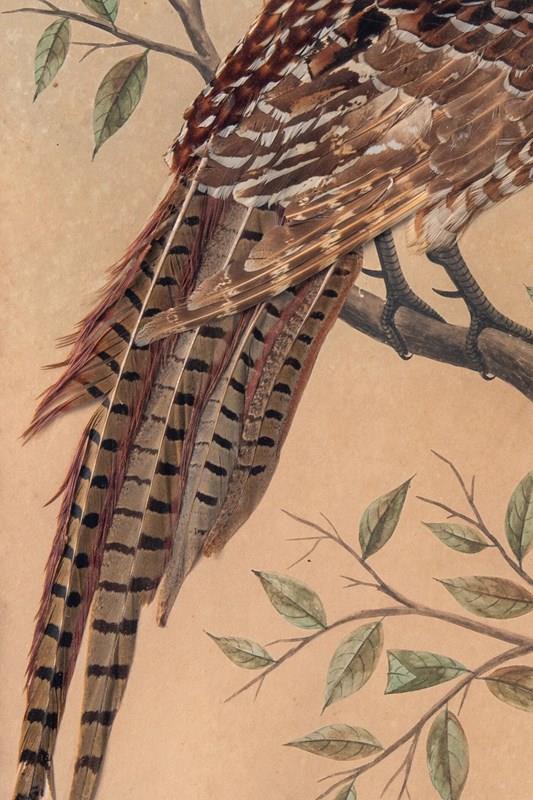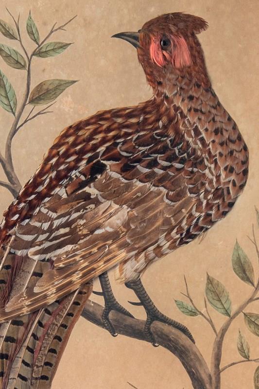 Pair Of French Featherwork And Watercolour Studies Of Pheasants, 19Th Century