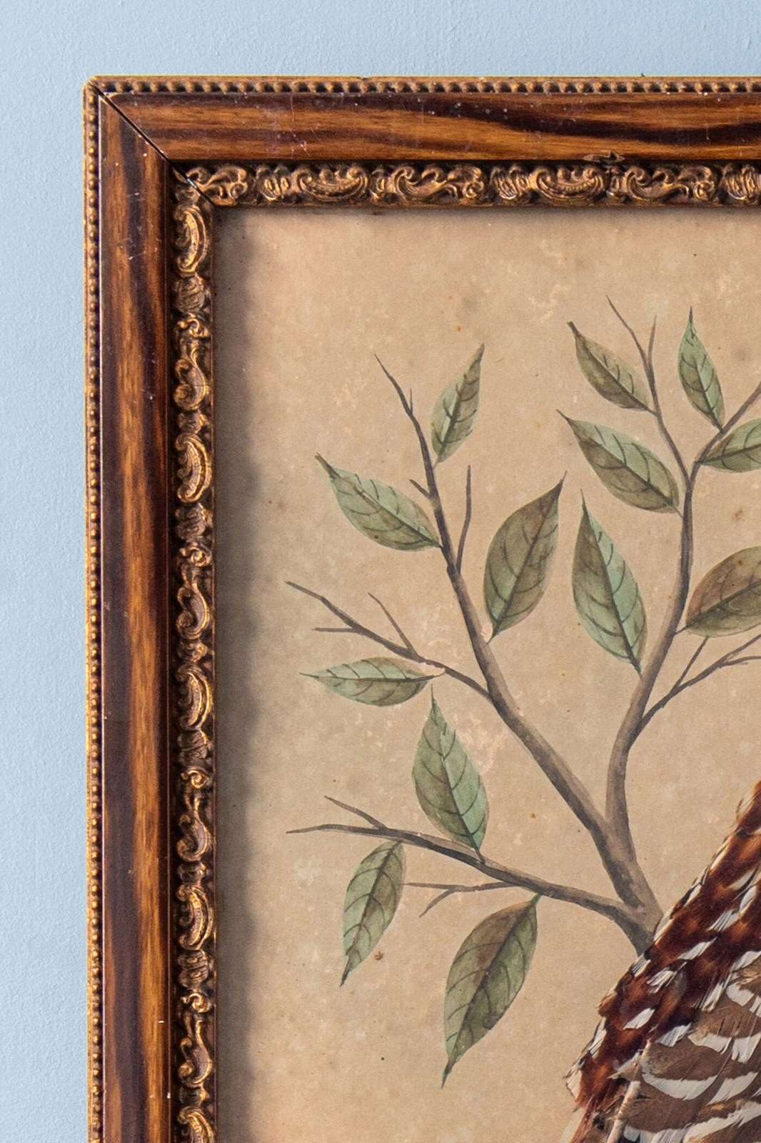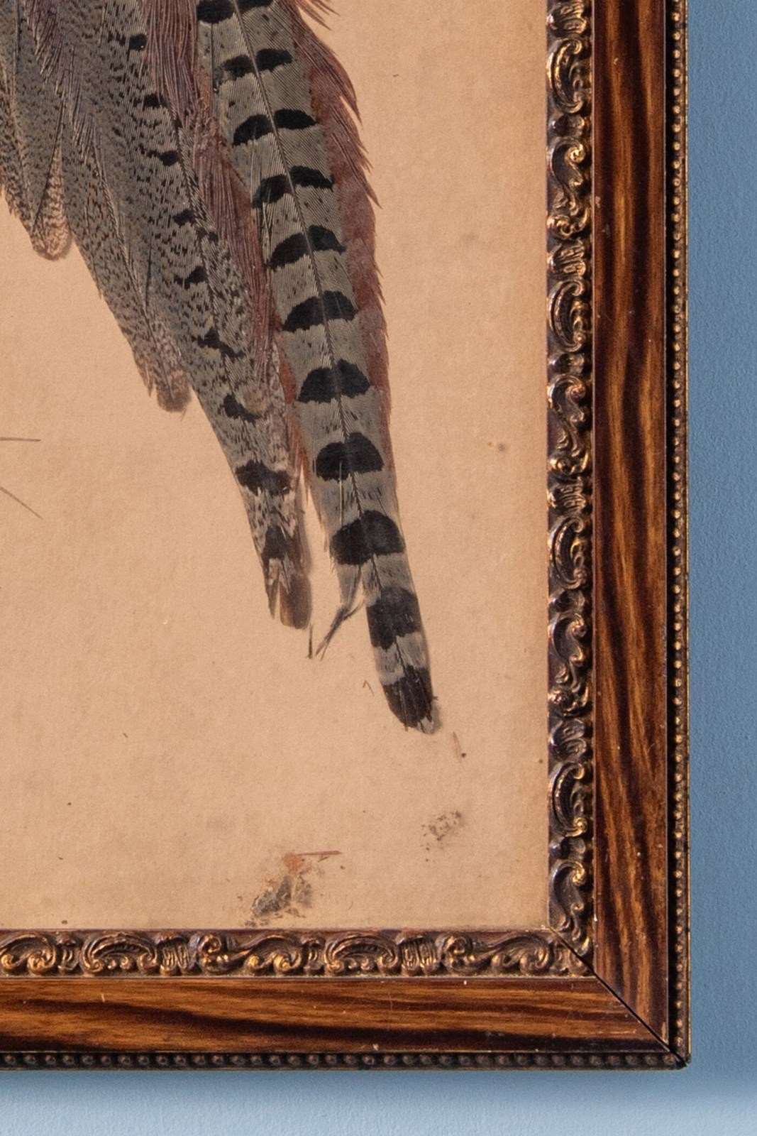 - Minor wear to feathers and light staining to the paper, commensurate with age. Some wear to the frames.