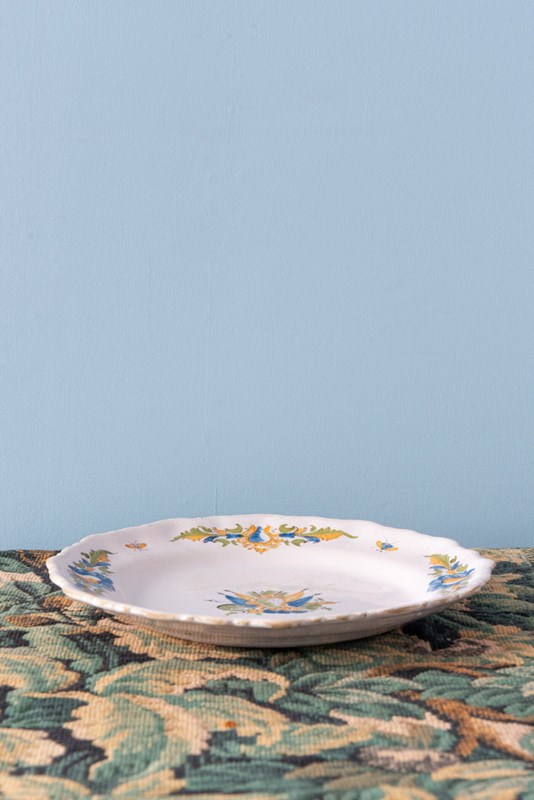 Pair Of Moustiers Faience, Rococo Flag Plates, C. 1750