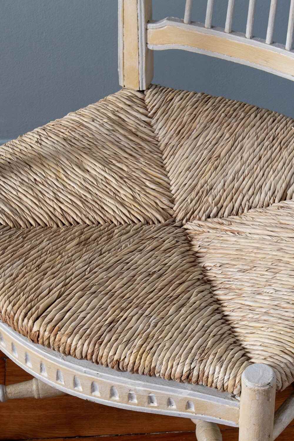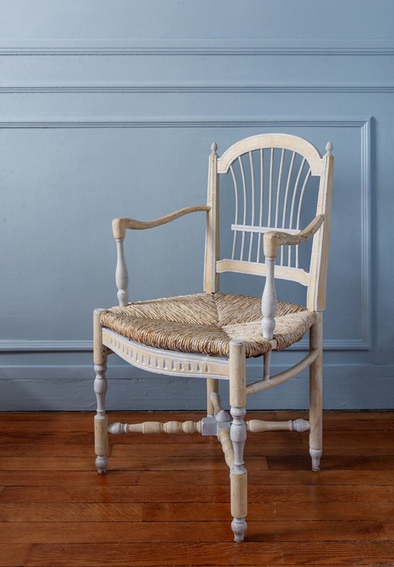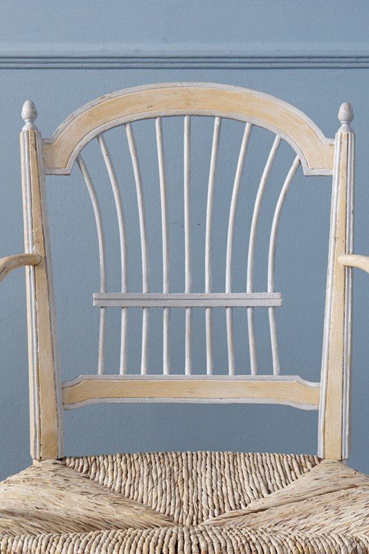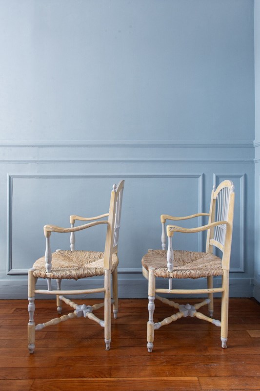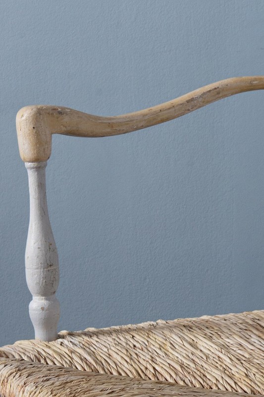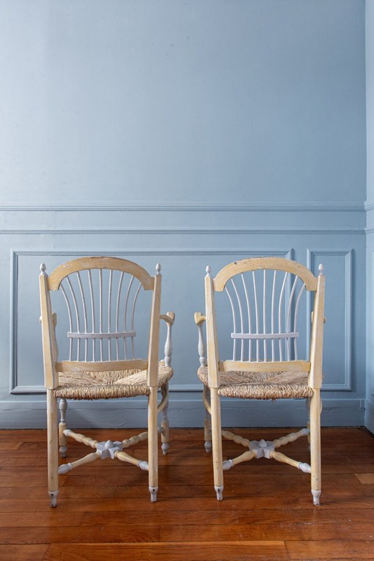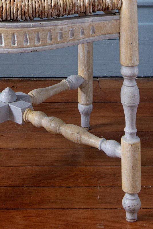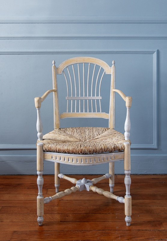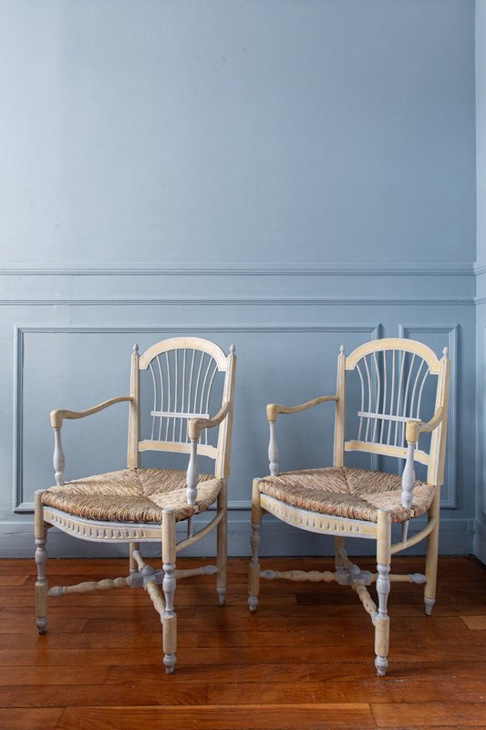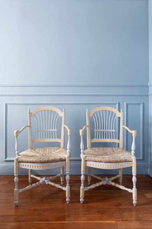 Pair Of Provençal Painted Armchairs With Rush Seats, Late 19Th Century