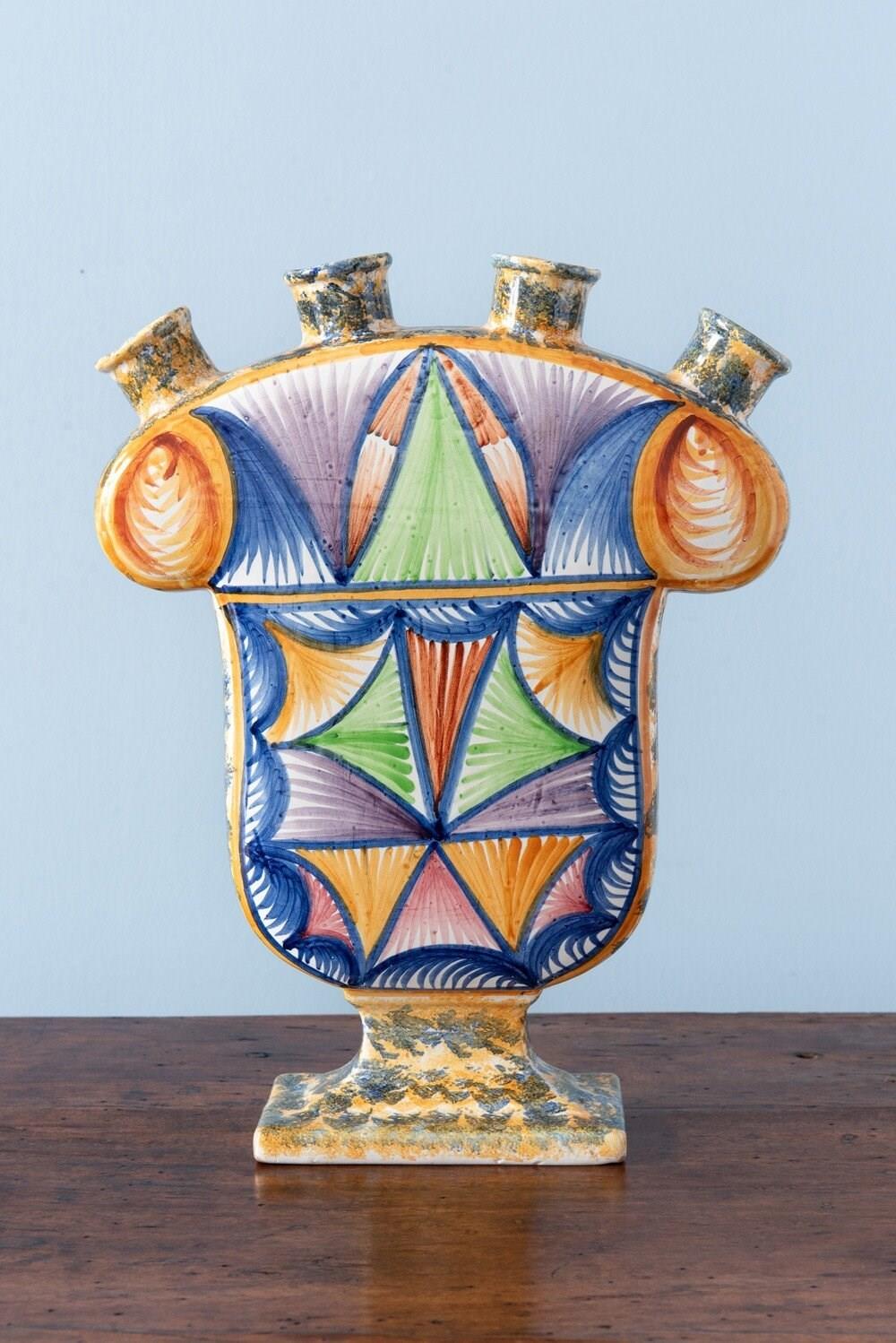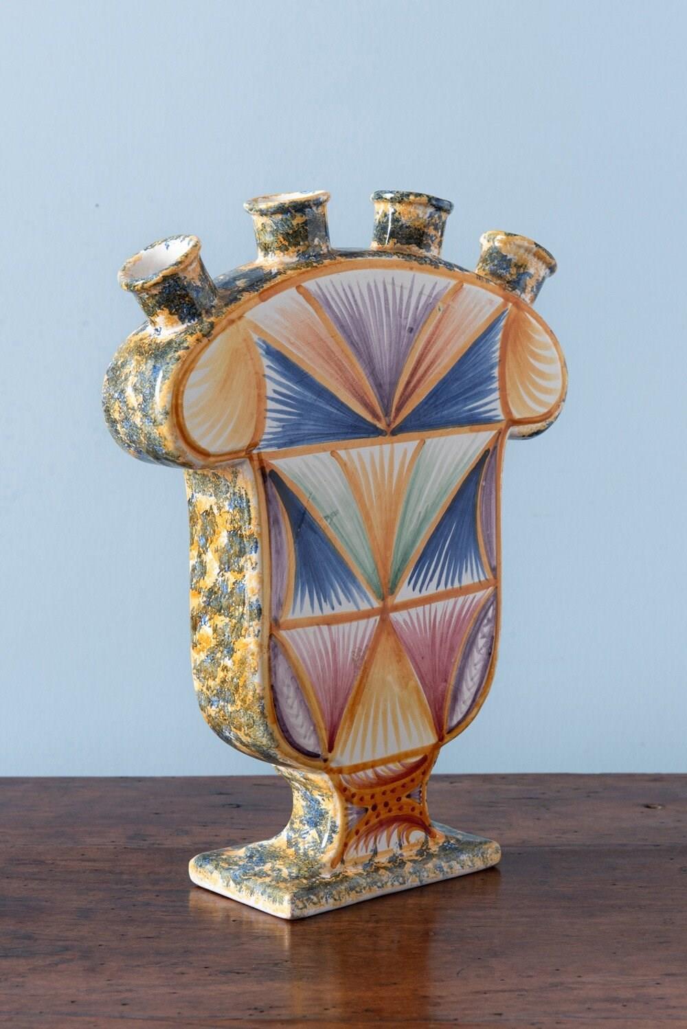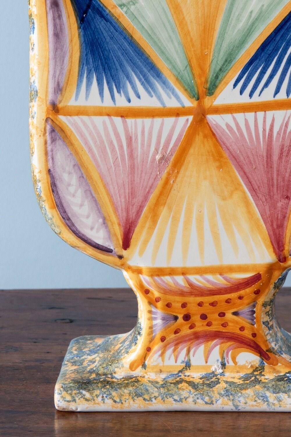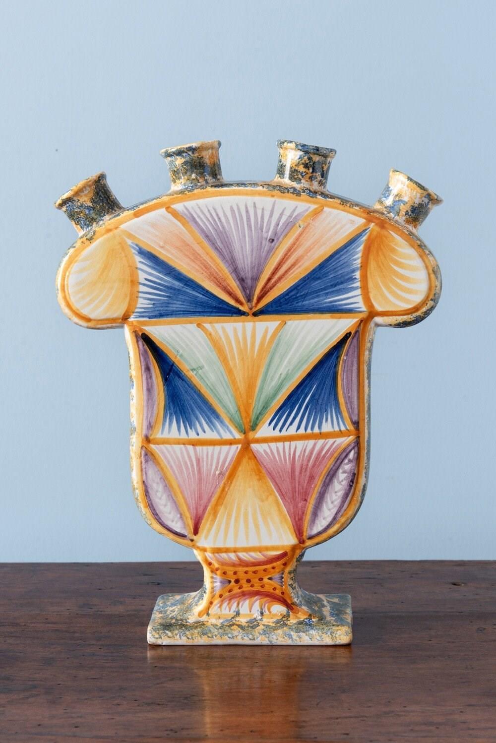 Quimper Faience, Large Geometric Tulipiere, 1950S