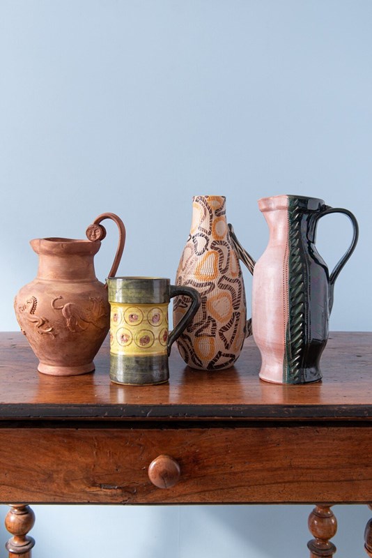 Romacrea School, Pink & Blue Ceramic Jug, 1950S