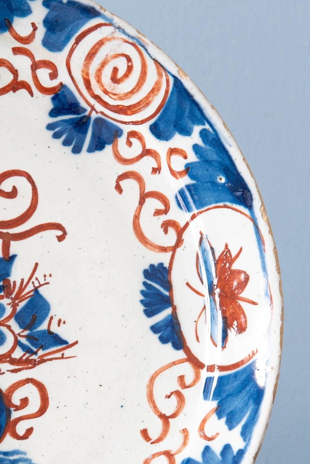 Trio Of Dutch Delft Blue & Red Plates, 18Th Century