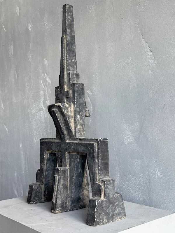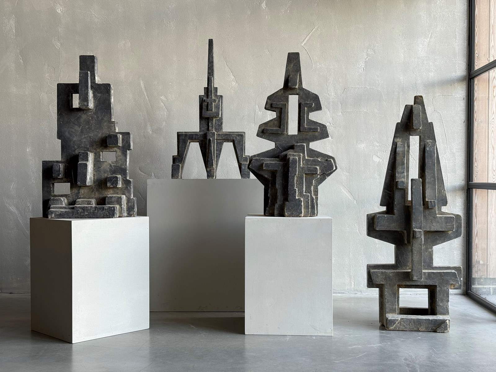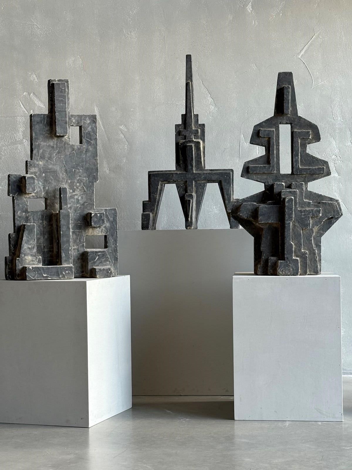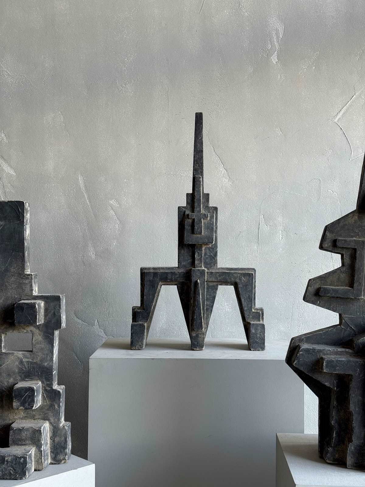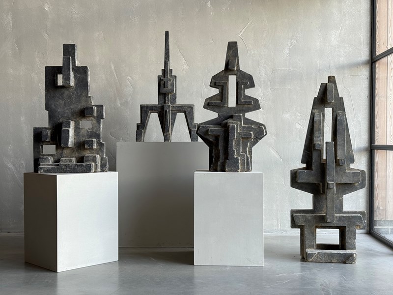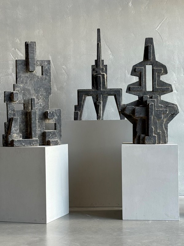 These well executed Sculptures with lovely opacity of colour and patina are a striking confluence of Brutalst/Cubist/Abstract Form. Signed with monogram, date now indescript but most like 1977.
