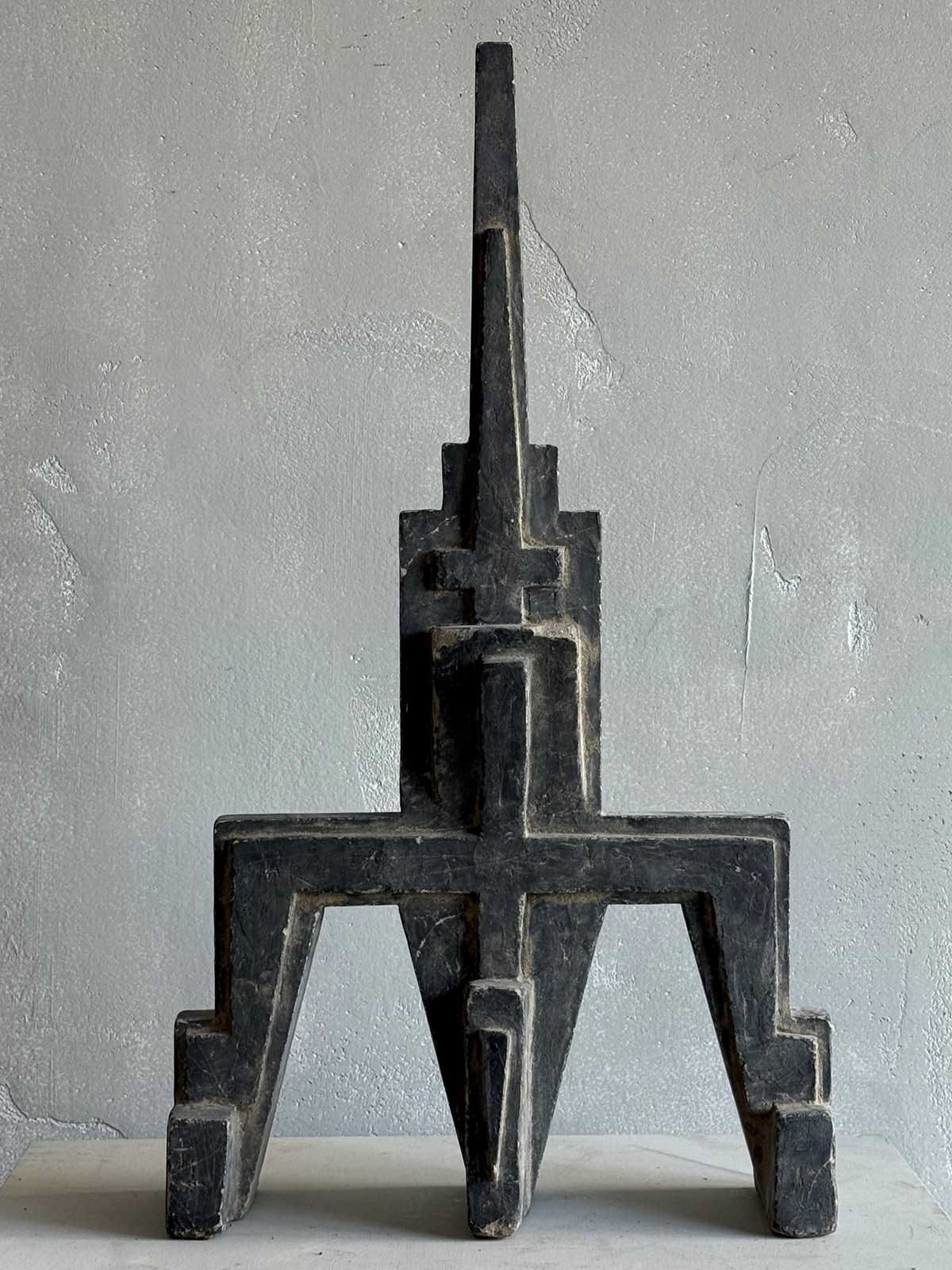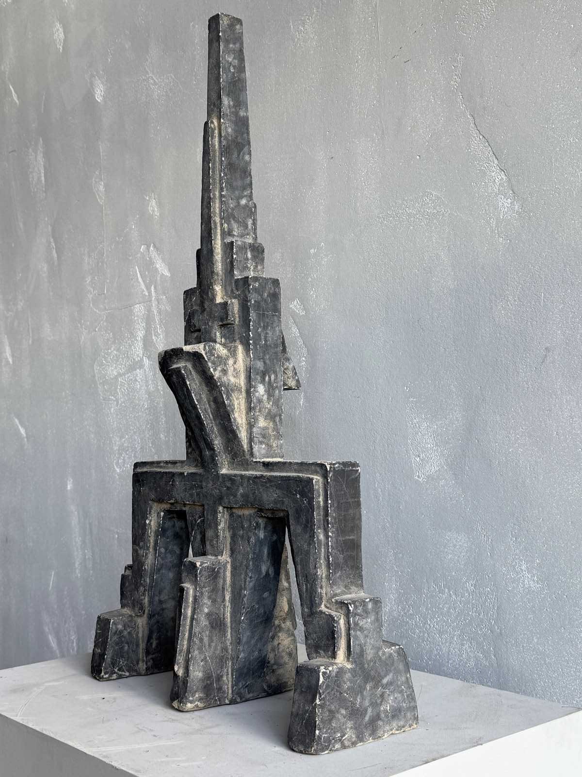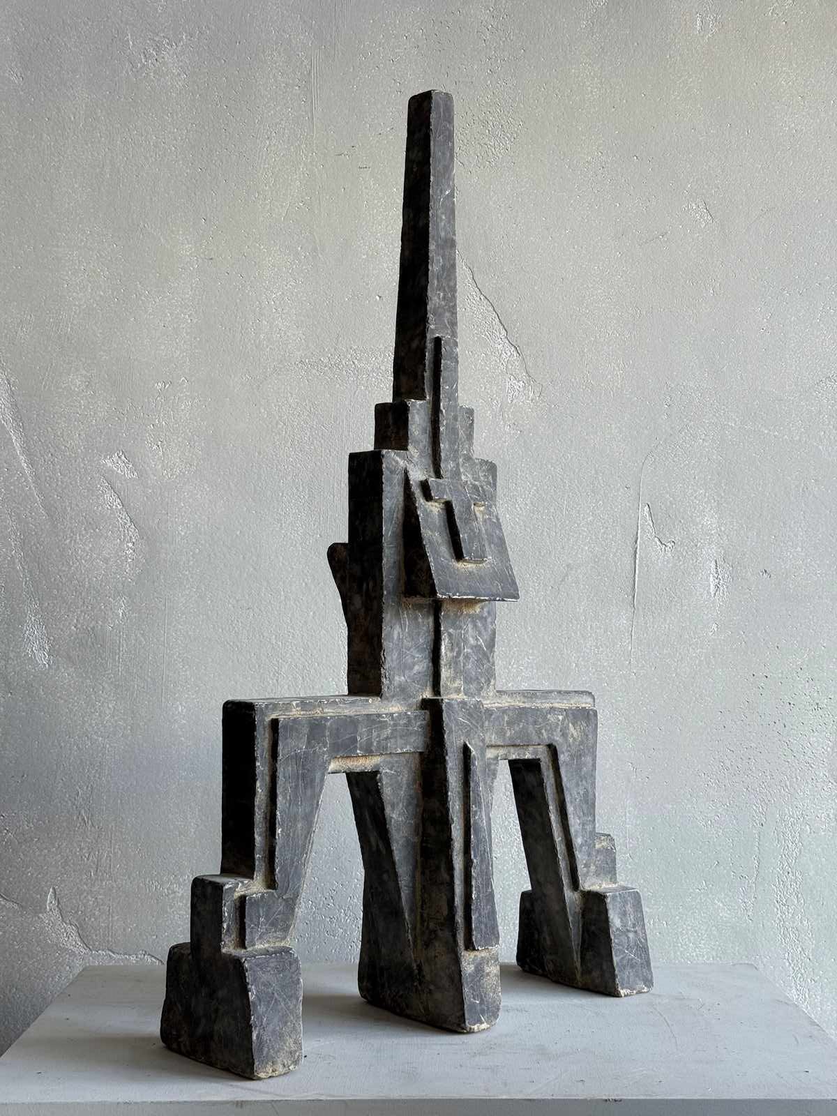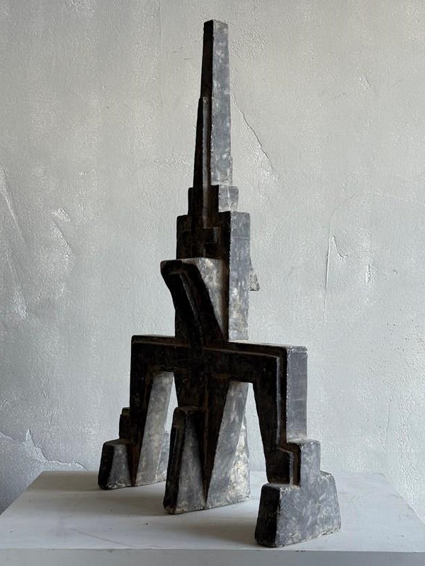 A Brutalist inspired Sculpture of Abstract Pyramid Form in composite concrete, Artisan work - France 1970s.