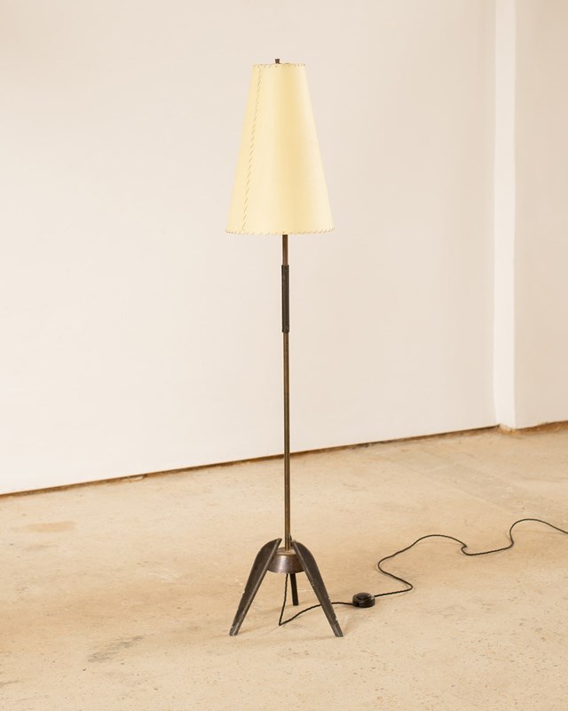 1950S Tripod Floor Lamp With Whip Stitched Velum Shade