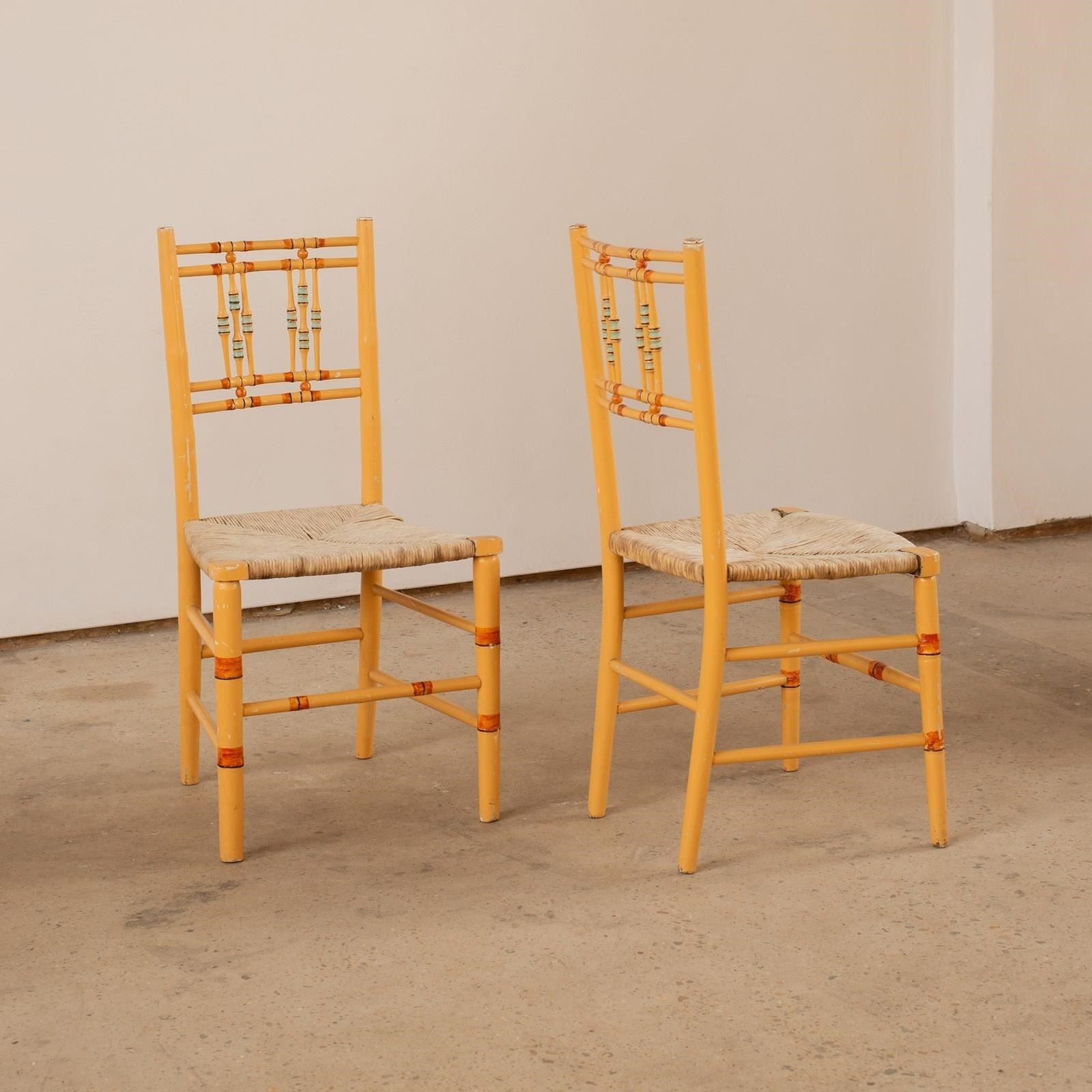 A Faux Bamboo Regency Chairs With Striped Paint