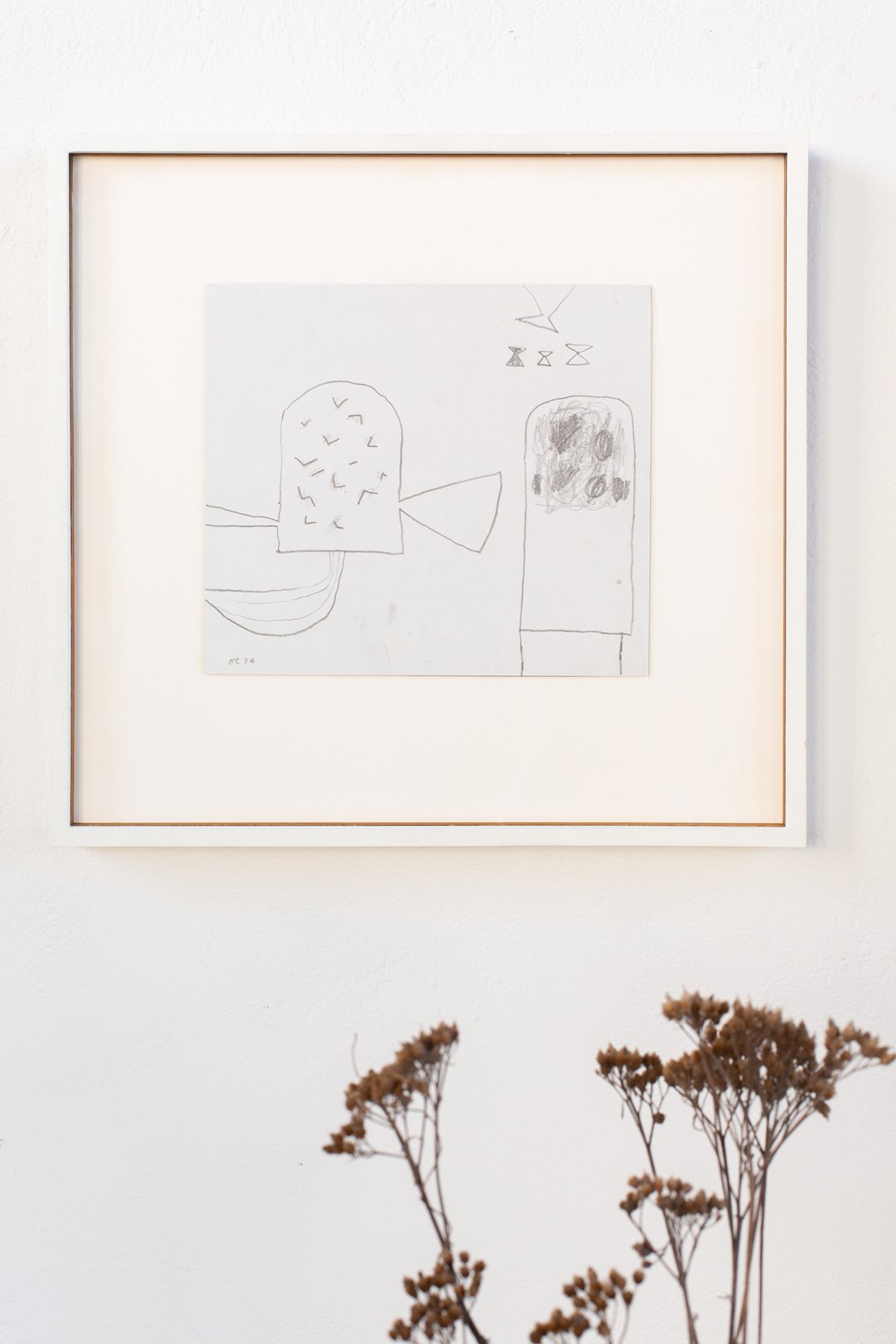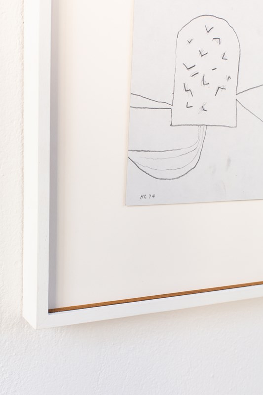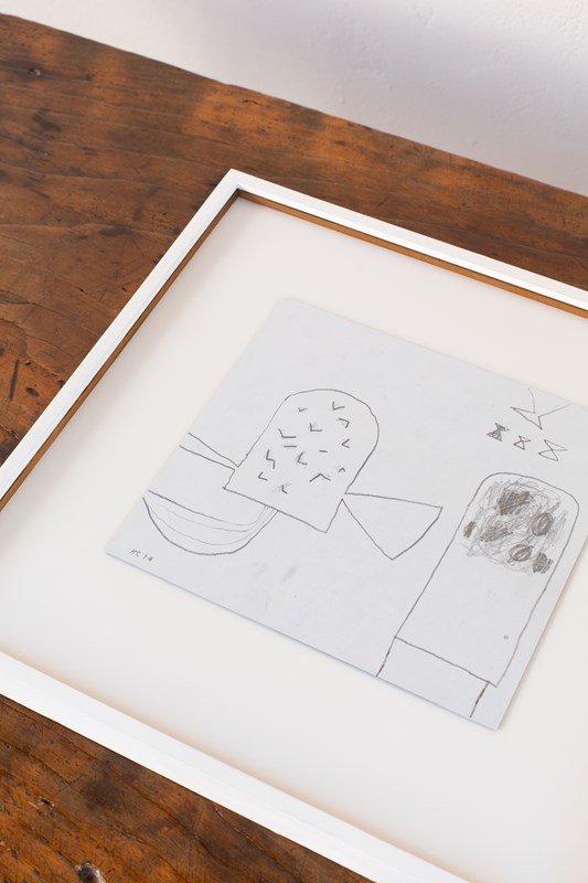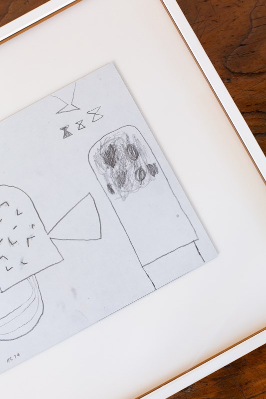 An abstract drawing in pencil on paper by British artist Henry Cliffe (1919-1983). The work is signed by the artist, C1970. Presented in a hand-painted wooden frame.