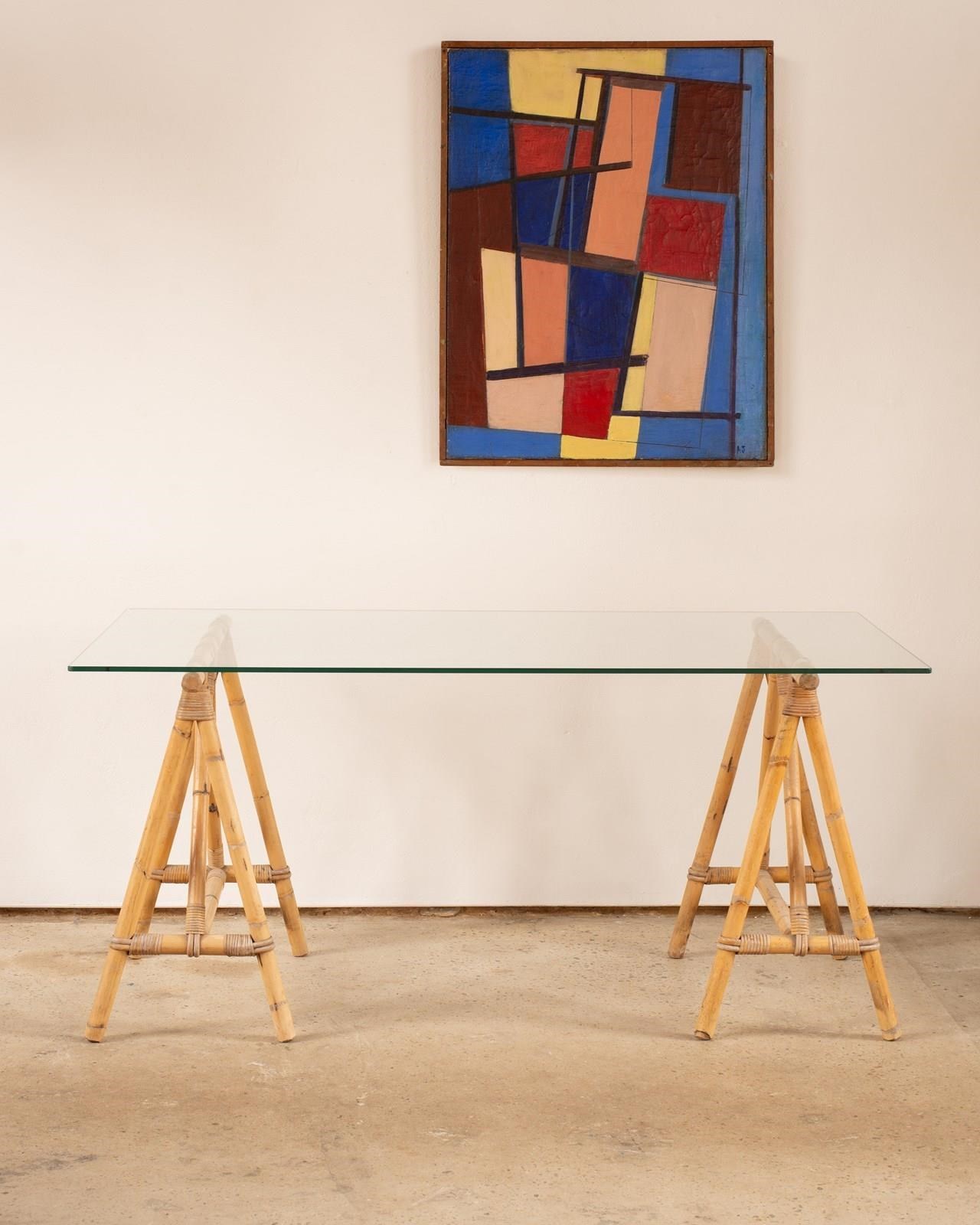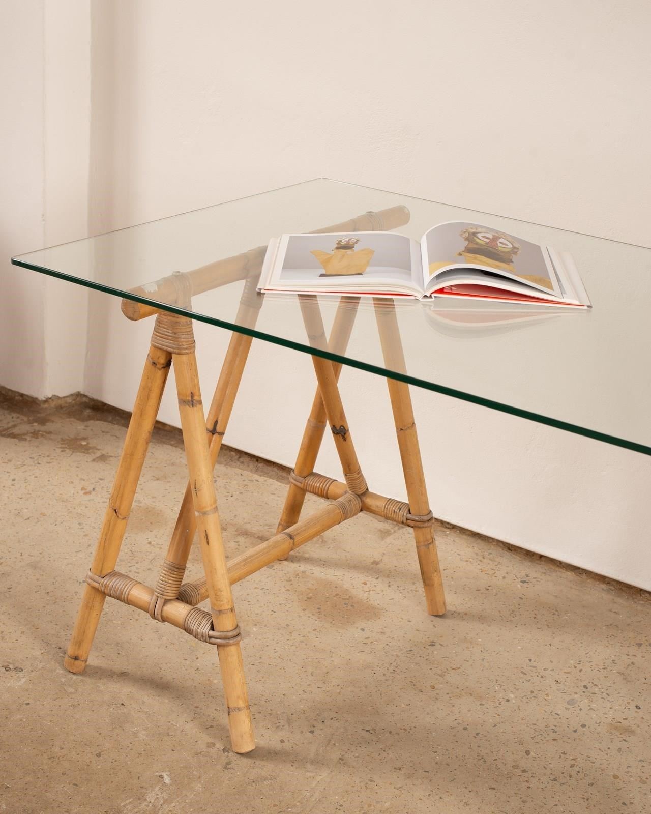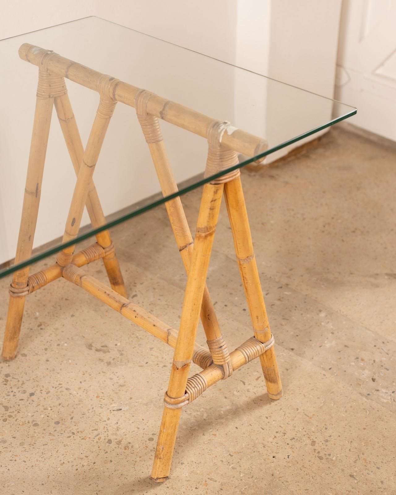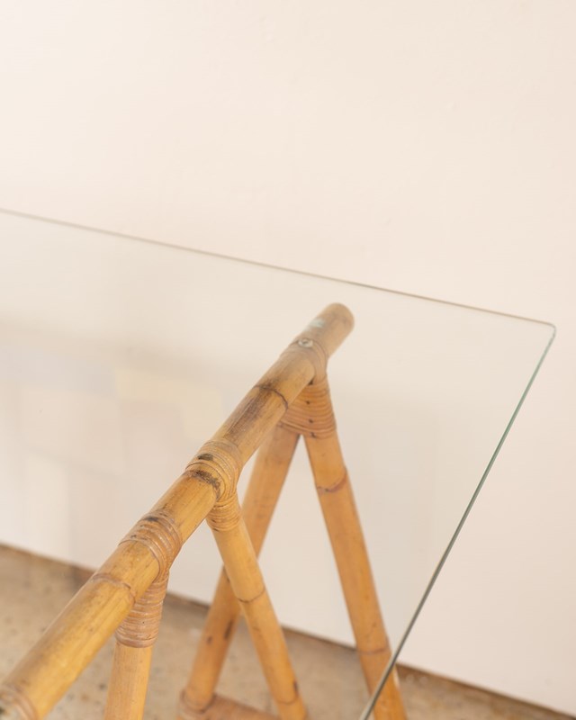 Bamboo Trestle Table With Glass Top
