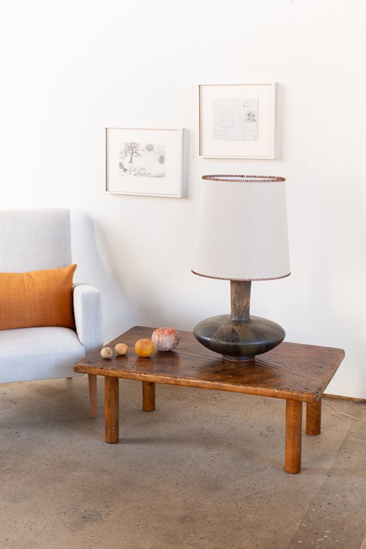 Brutalist Handcrafted Rectangular Coffee Table With Circular Legs