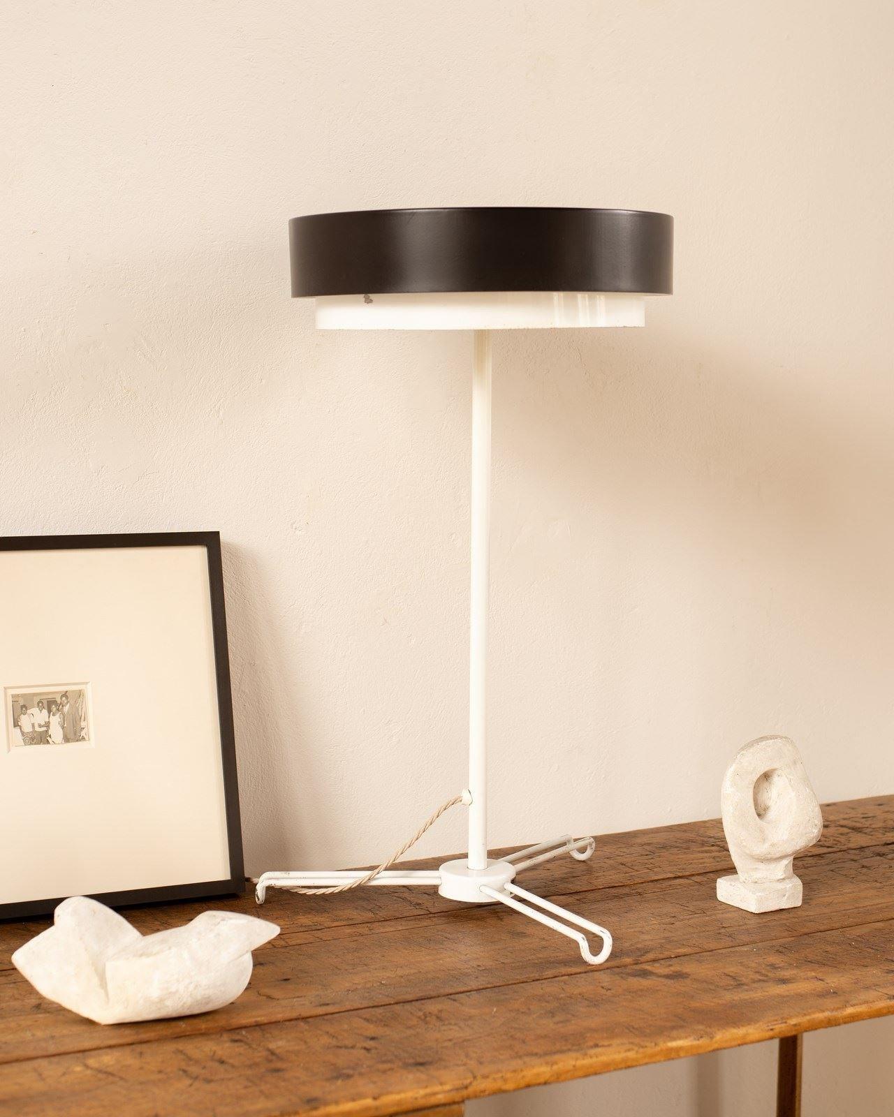 Chocolate And White Metal Table Lamp By Meyer, Germany C1960
