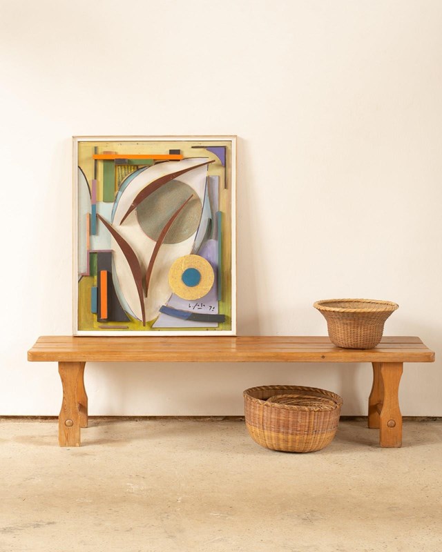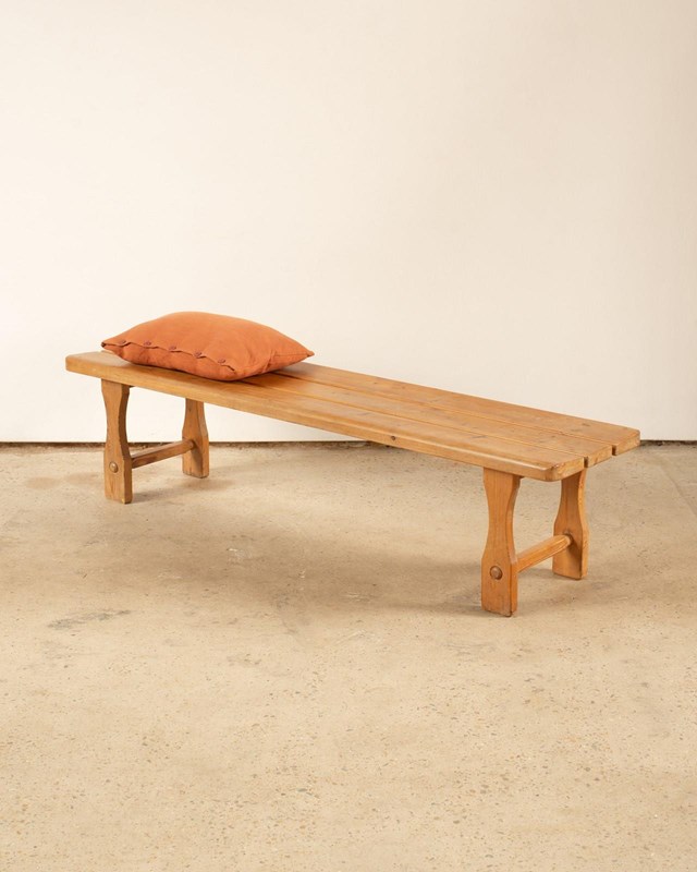 Mid Century Slatted Pine Bench France C1960