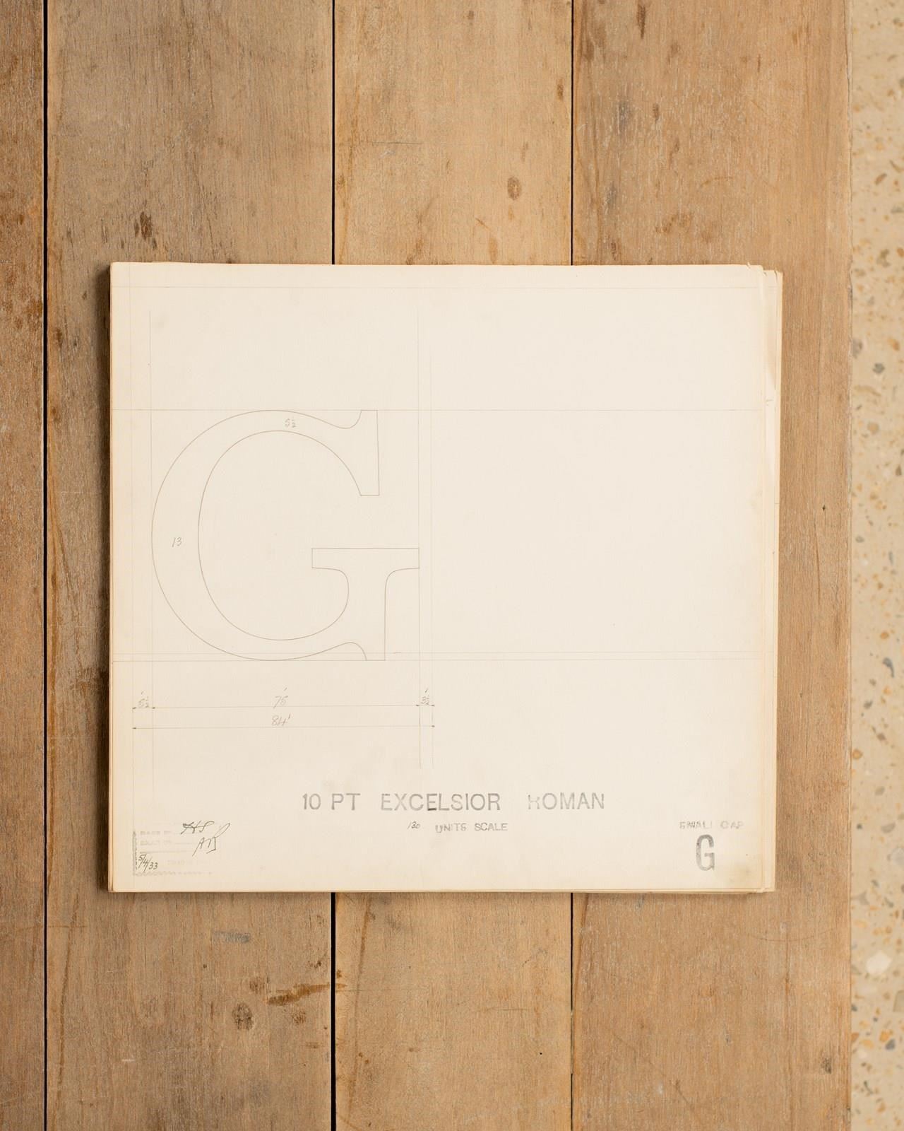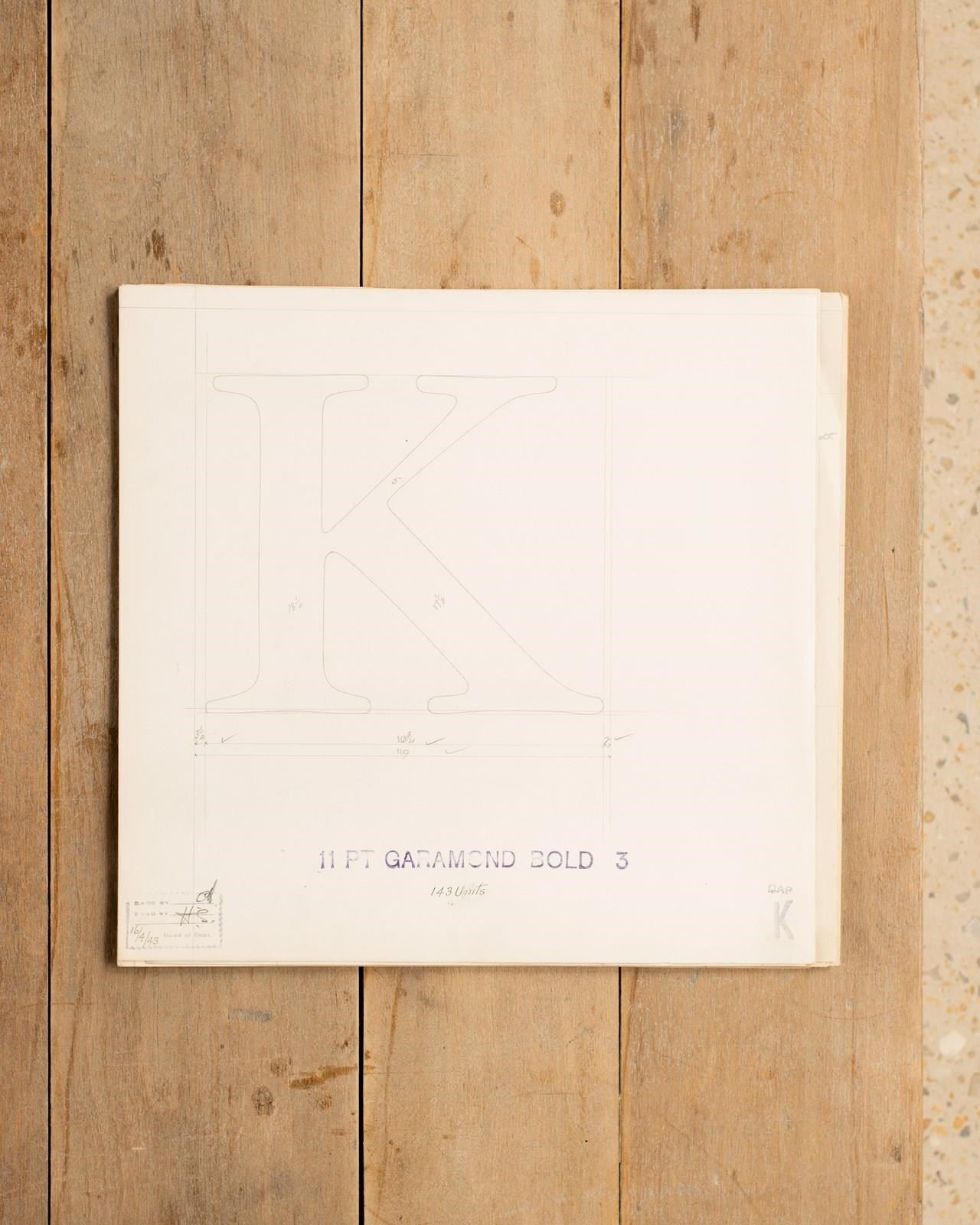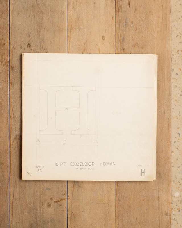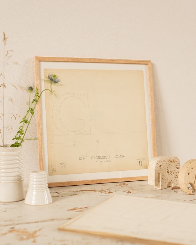 A Collection of original hand rendered master drawings of letters and punctuations, individually dated and originally used as the matrices for making brass moulds at the Linotype Foundry in Manchester, Northern England. Mounted and framed, these unique slices of British industrial history make the perfect personalised gift.