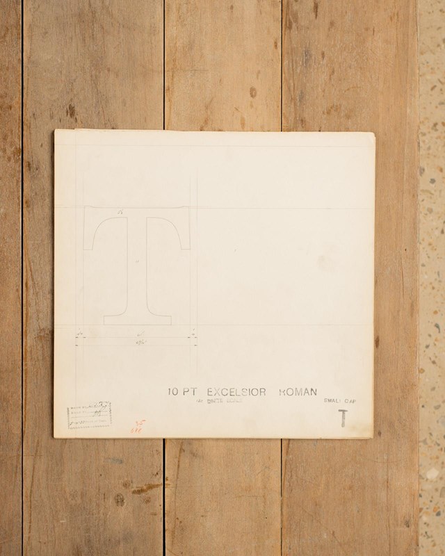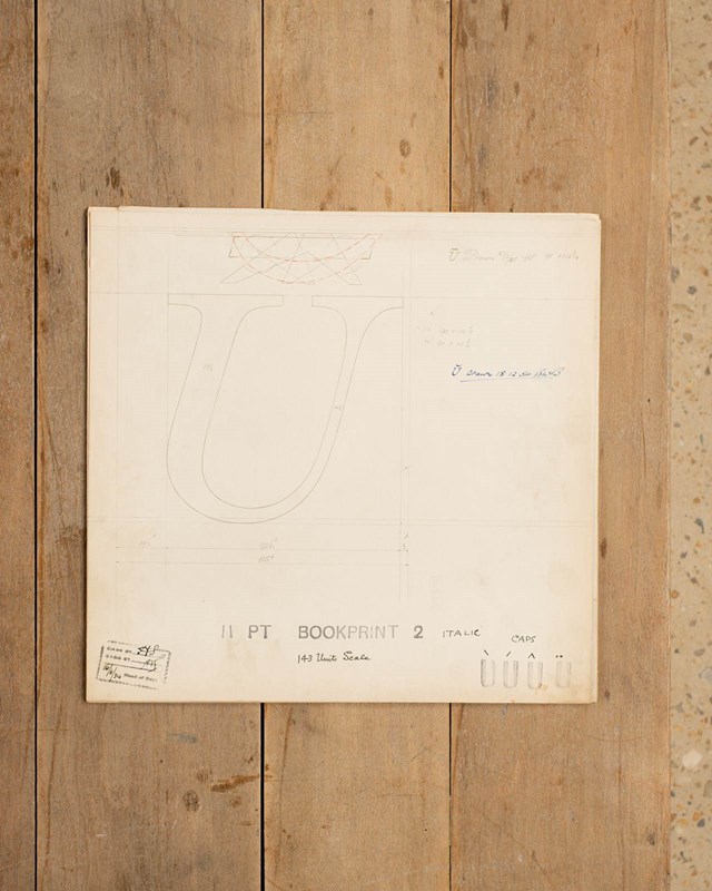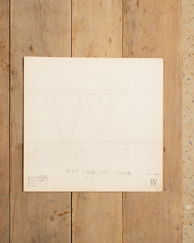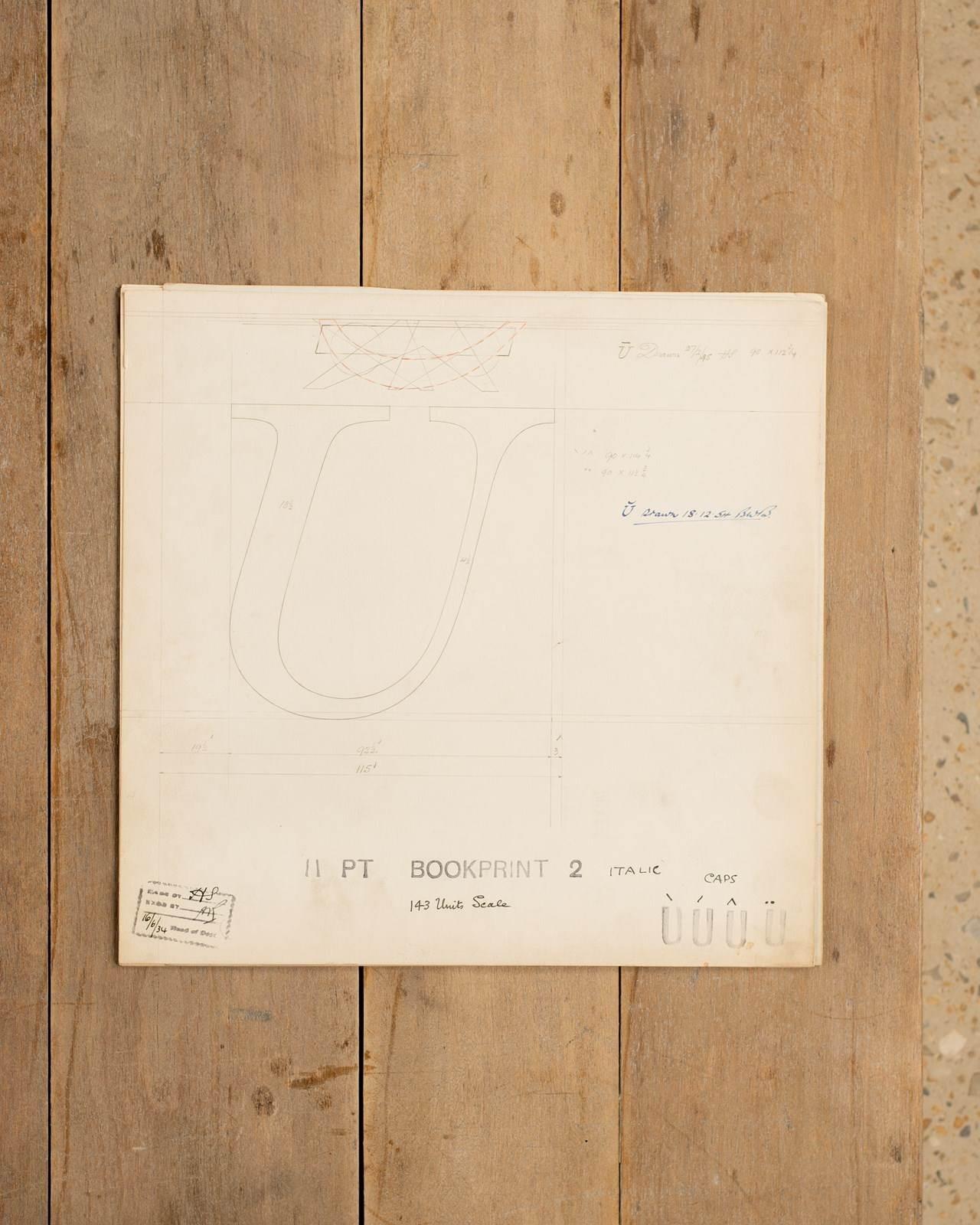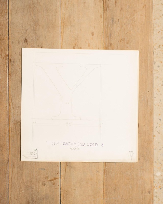 A Collection of original hand rendered master drawings of letters and punctuations, individually dated and originally used as the matrices for making brass moulds at the Linotype Foundry in Manchester, Northern England.